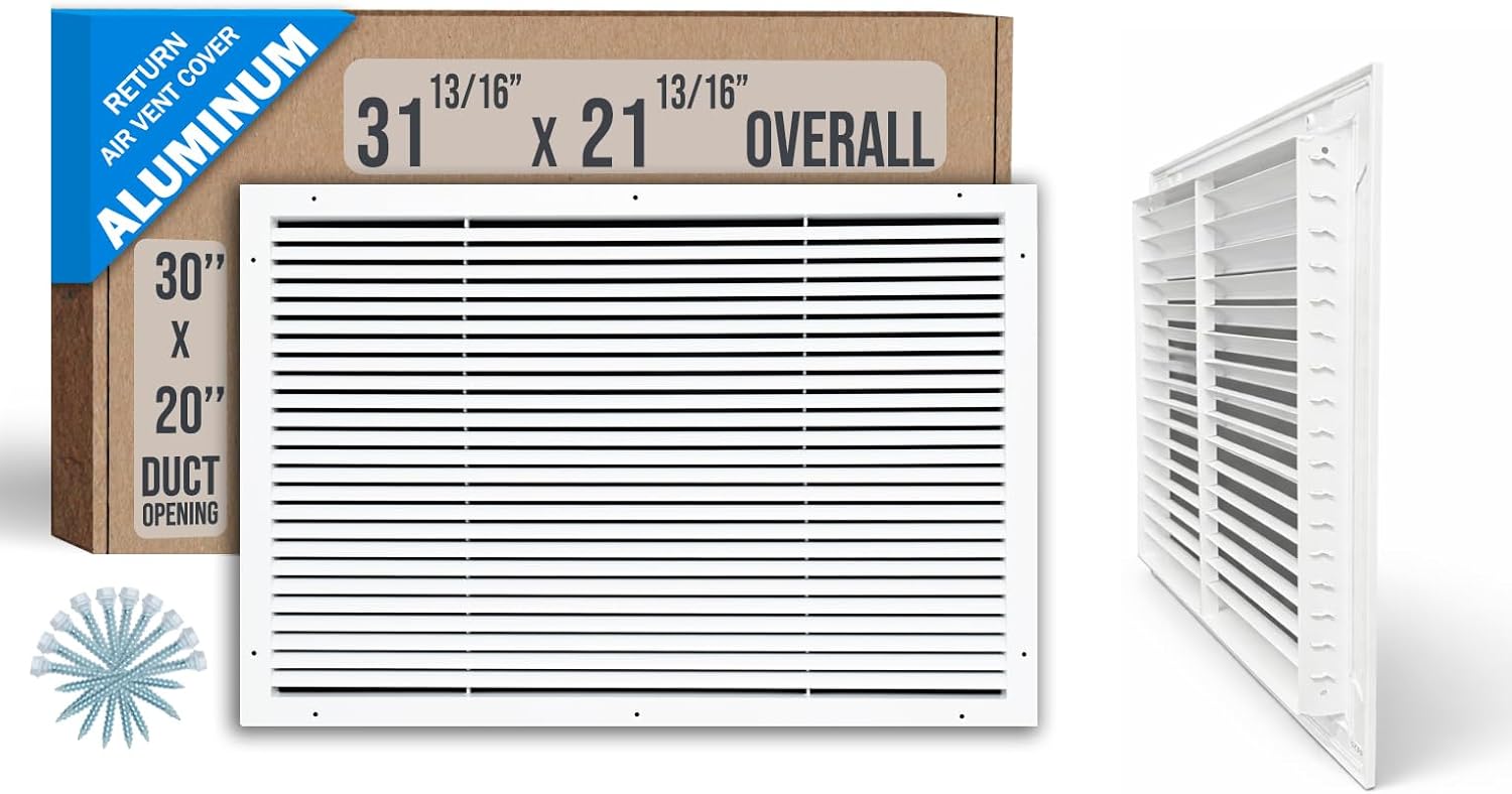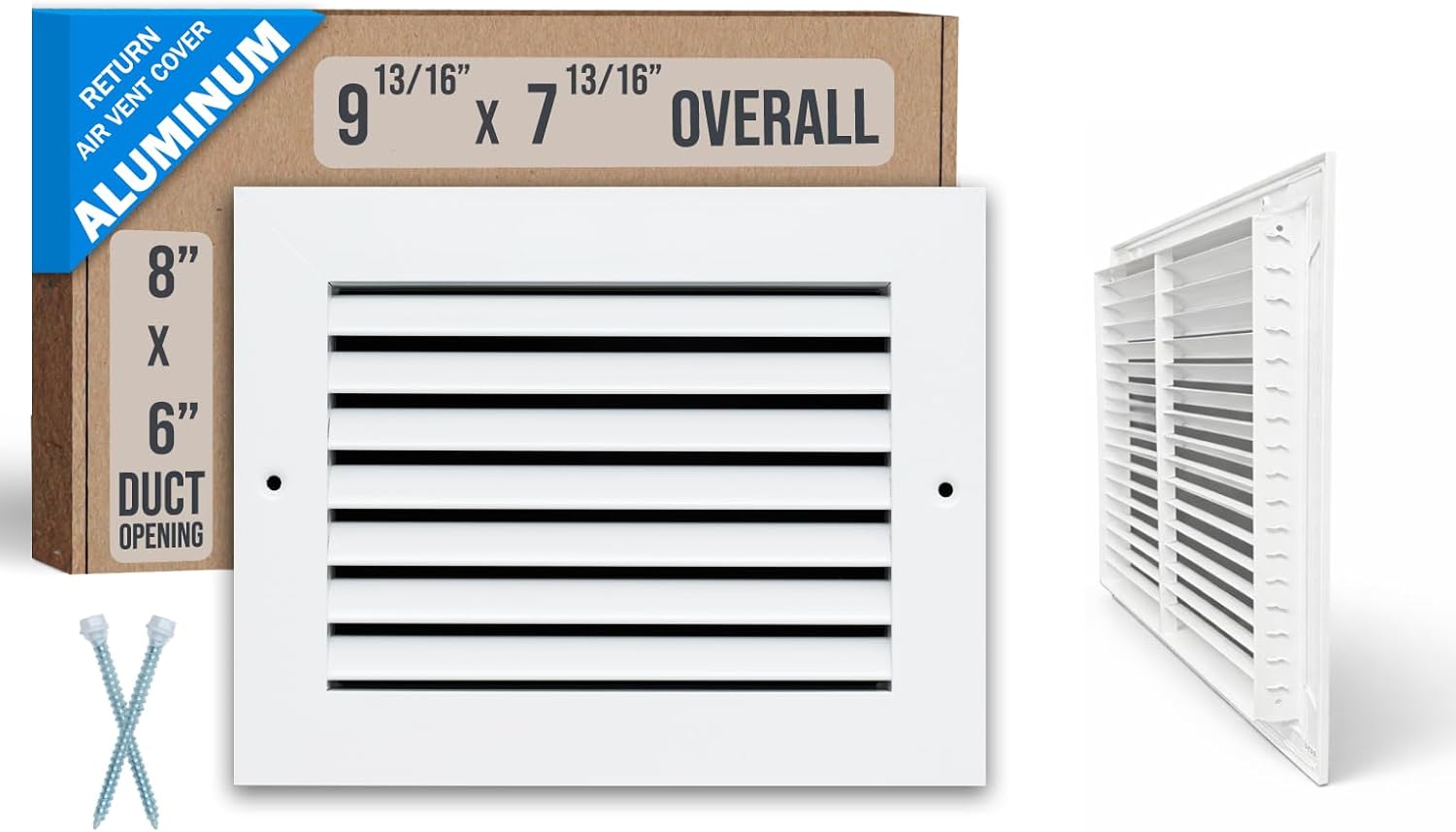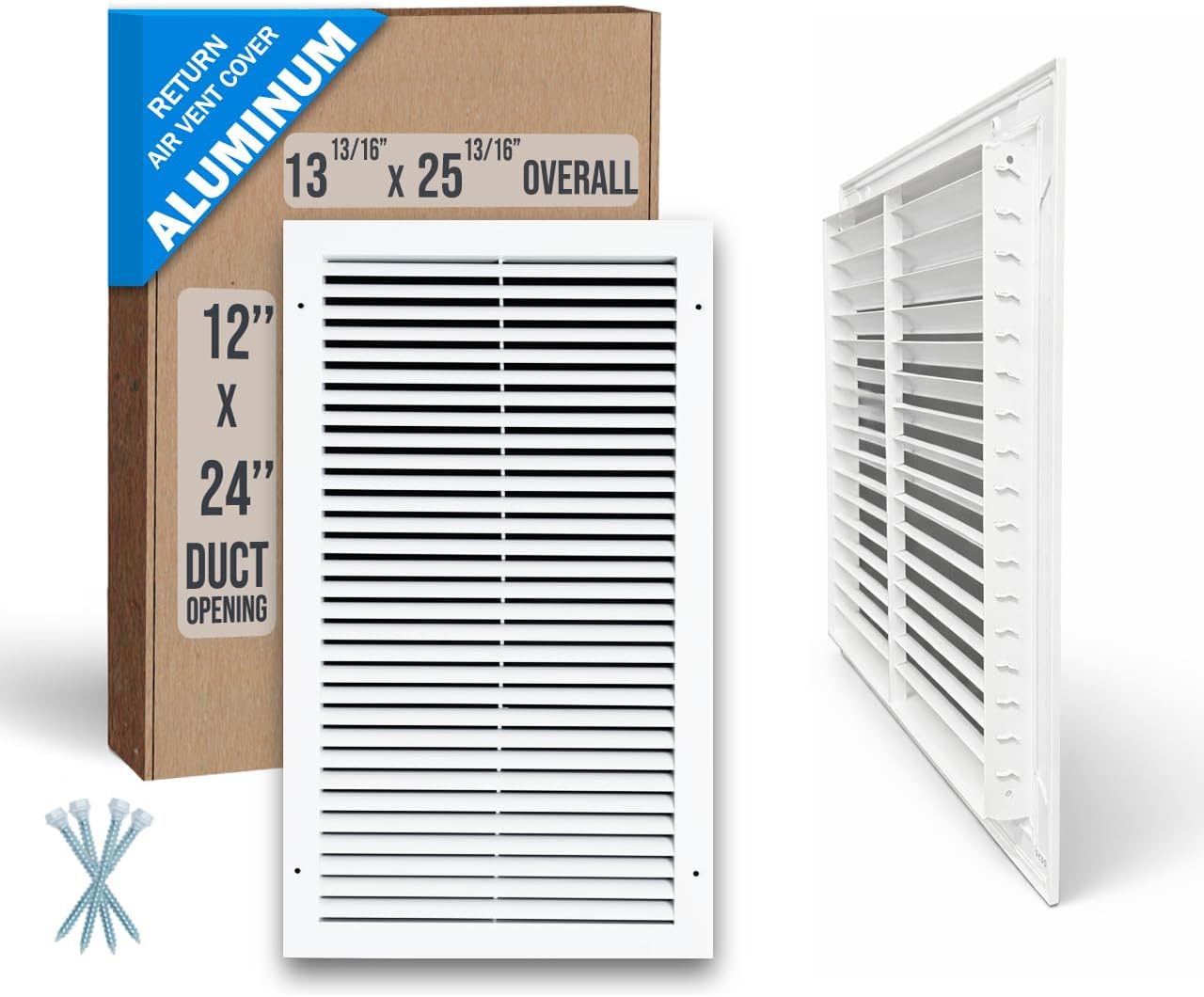 Premium Aluminum Vent Cover for Enhanced Airflow and StyleEnhance your space with our PREMIUM ALUMINUM VENT COVER, designed for optimal airflow and modern style. Crafted from high-quality aluminum with a durable powder-coated finish, this lightweight and rust-resistant vent cover ensures long-lasting performance in residential or commercial settings. Its sleek design features linear curved fins angled at 45 degrees, maximizing airflow while minimizing noise for quiet, efficient ventilation. The contemporary finish resists scratches, flaking, and fading, complementing any dรฉcor. Sizing is simple: measure your duct opening, as the listed size corresponds to the wall or ceiling opening dimensions, with outer grille dimensions 1 13/16" larger for a perfect fit. Suitable for sidewall or ceiling installations, this vent cover includes screws for hassle-free mounting, offering an effortless way to improve ventilation and air quality in your space.