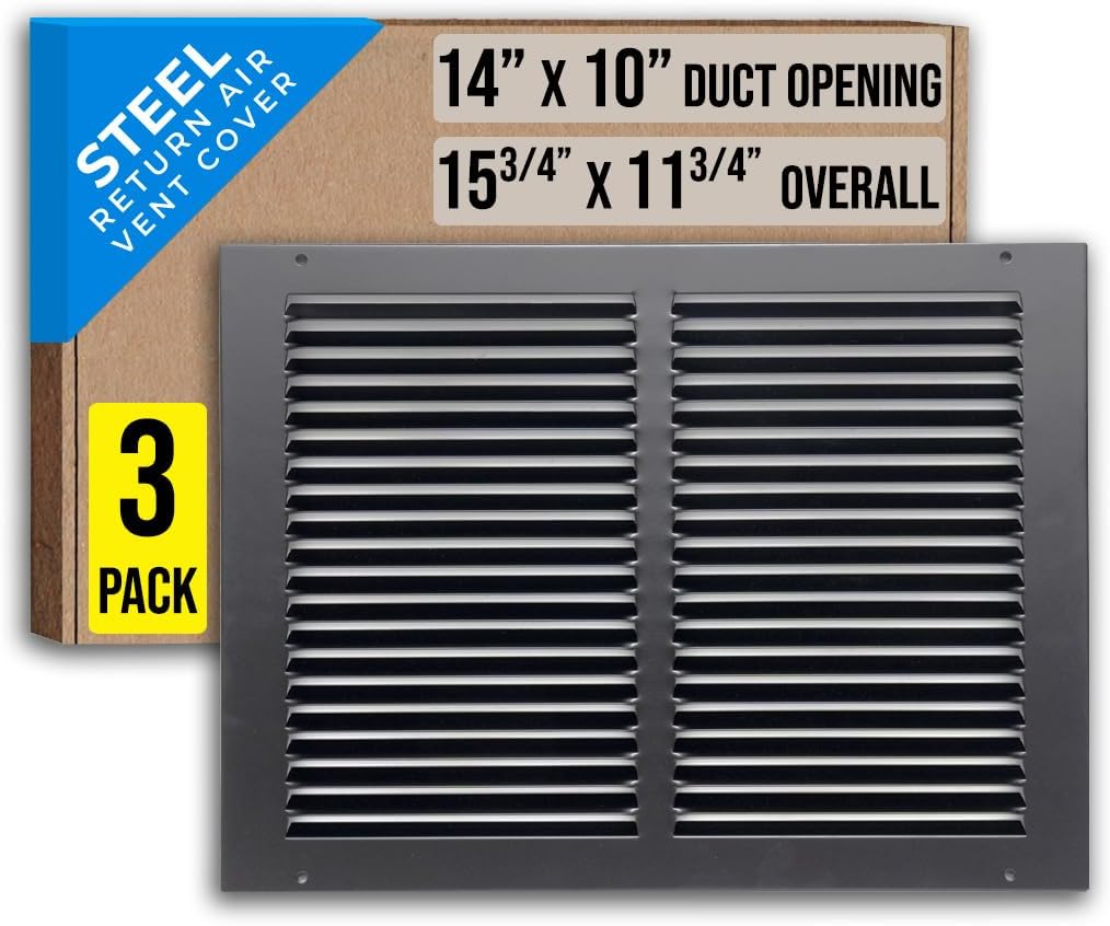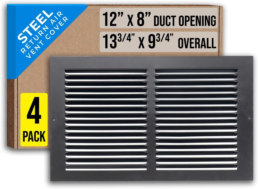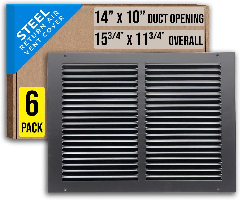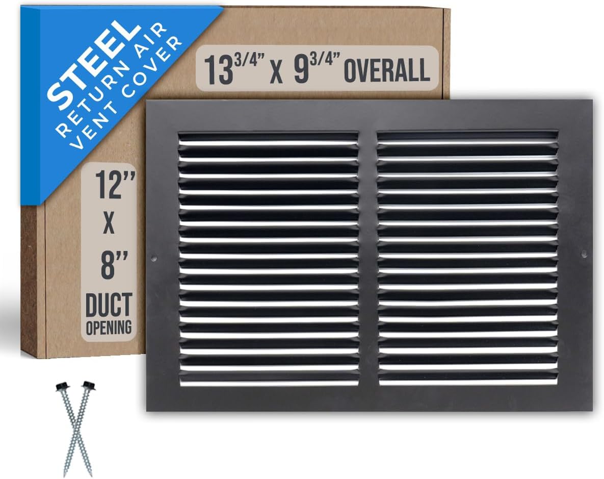 Return Air Grille for 30"x6" Duct Opening, Black, Steel 1/2"spaced fins set at 40 degrees. Primary use: Side wall and ceiling. Screws are included with the system, standard. All-steel construction. Durable black powder coated. Standard color is black.How To Measure A GrilleAlways measure the size of the duct opening (the "hole" in the duct/wall). Do not measure the entire size of the register itself. Size of the grille is; listed size +1.75-inch.Understanding Width & HeightIn a grille size, the first number always represents the width and the second one is the height. As an Example: If the hole on your wall/duct is 30" wide by 6" tall, order 30x6 option. If the hole is 6" wide by 30" tall, order 6x30 option. For this particular product you're viewing at the moment, the hole on your wall/duct opening should be 30"Wx6"H. Click the 'Add To Cart' button now to order your Return Air Filter Grille!
