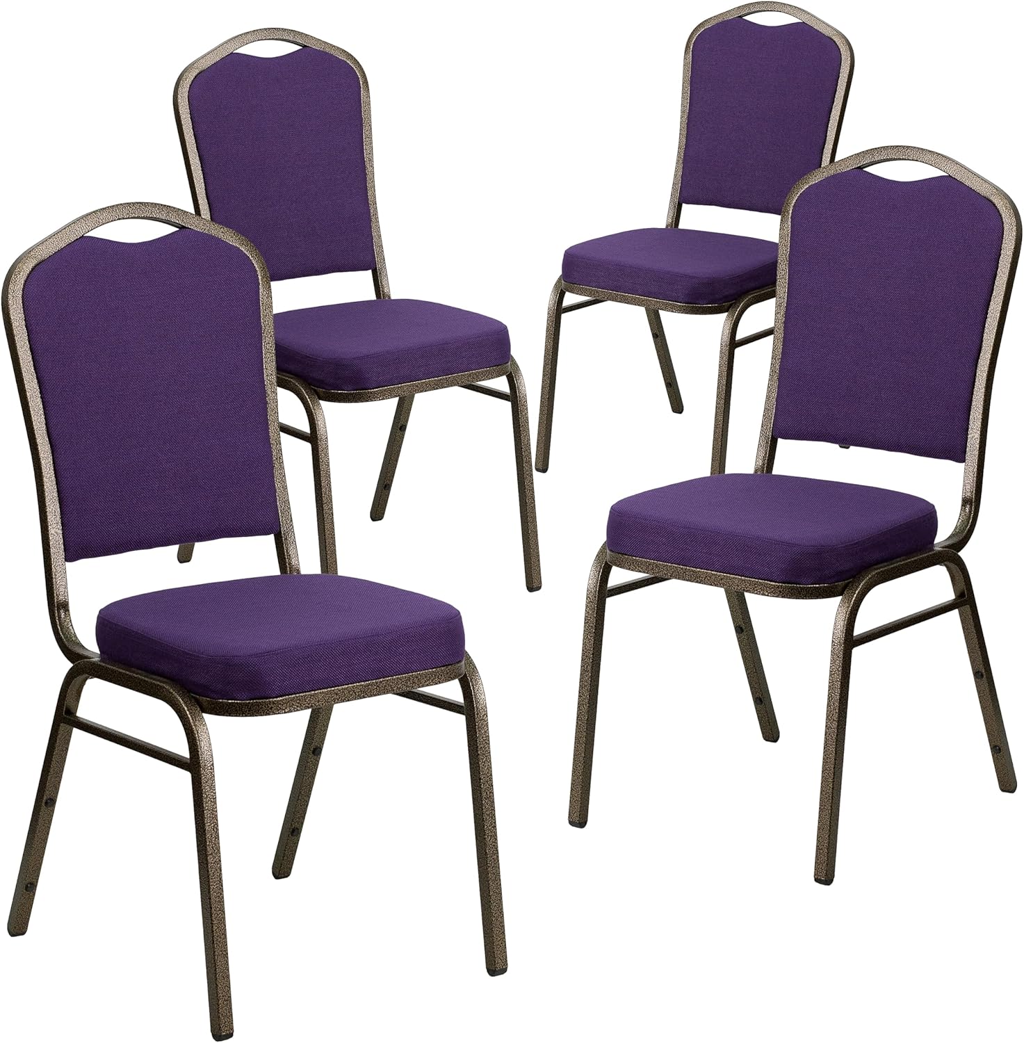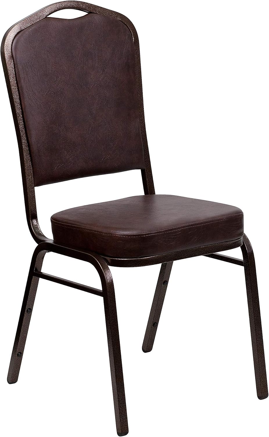 Make an impressive presentation in your banquet hall when clients come to visit your facility with these ballroom chairs. Built for the commercial industry these popular crown back banquet chairs have been tested to hold up to 500 pounds. With a high seating capacity these stack chairs are perfect for the event rental business. This standout hospitality chair can be used as is and still command attention or be dressed up for formal events by placing a chair cover over it. The chair is cushioned with 2.5" thick CAL 117 fire retardant foam and is covered in durable upholstery for high usage. The sturdy frame with gracefully angled legs are made of 16 gauge steel in a lasting powder coated finish. Double support braces reinforce the frame to give it great strength and durability. Bumper guards prevent scratches on the frame when stacked (up to 15 high) and non-marring floor glides protect your floor by sliding smoothly when you need to move the chair. This multi-use stacking upholstered stack chair is an excellent option for churches, banquet halls, training rooms, hotels, convention centers and schools. Add banquet chairs to your home dining table to add a contrasting look to your dining room or kitchen.