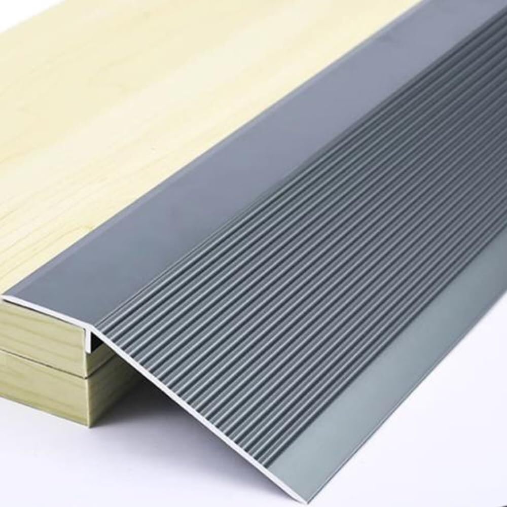 Elegant and flat design. Automatic adjustment of height and inclination. Installation is simple and safe. Specifications:Material: aluminum alloyLength: 3 ft (90 cm) Height difference: 10 mm (0.4 in) - 50 mm (2 in)Width: 100 mmColor: gold, black, silver, champagne, gray, purple gold, imitation steelPacking list: 1 x floor transition beltPeculiarity:Made of aluminum alloy, durable and waterproof.Eliminates punching problems and simplifies installation.Flexible tailoring, you can cut the right length according to your needs.Ideal for covering gaps where two floor coverings meet.PrecautionsThis product contains only 1 floor transition belt and does not contain any products in the pictureThis product is measured by hand, please allow 1-3 cm error and make sure you don't mind before placing an order.Due to the difference in shooting light and monitor, there may be color difference. Please refer to the actual product.