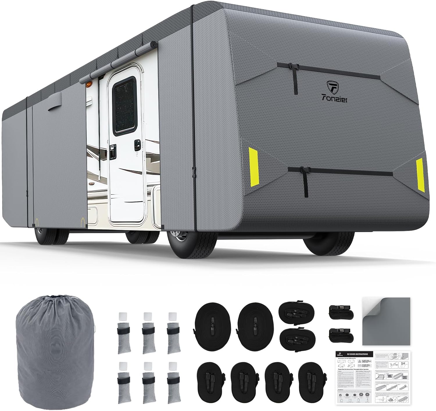 Fonzier Travel Trailer RV Cover Heavy Duty 7 Layers , Anti-UV, Rip-Stop, Utility RV Cover 28'7"-31'6"