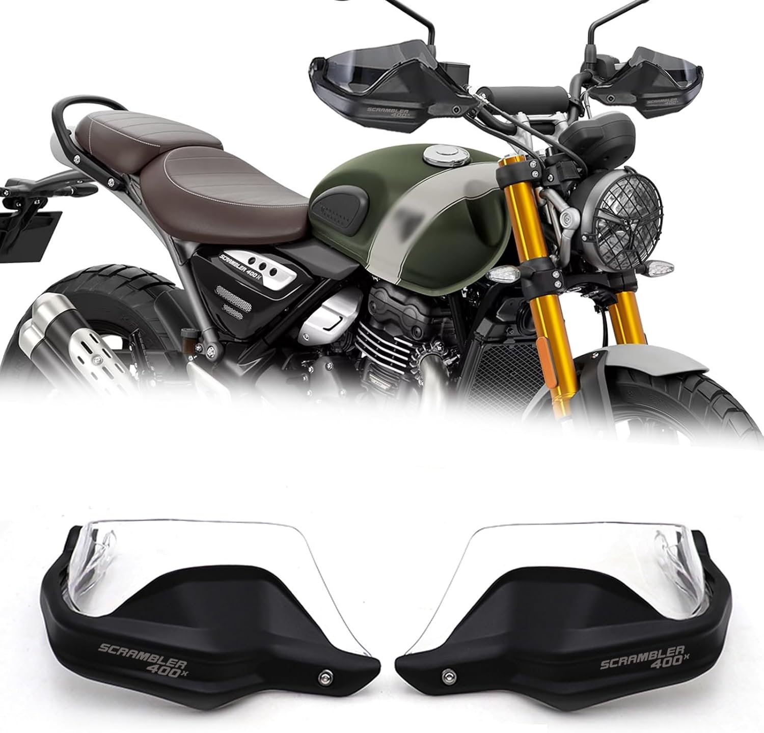 Features ▶This product can protect your hands from weather (especially wind and rain), making you more comfortable when riding. Thoroughly enhance the appearance of your motorcycle and make it more sporty. ▶Light weight, high strength, high stiffness, high tensile strength, high flatness, high temperature resistance and best gloss. ▶Made of thickened ABS plastic+ metal steel plate bracket accessories;Aerodynamic molding, impact-resistant, UV-resistant plastic, not easy to rust, not easy to break, windproof, sand-proof, protect your hands and drive safely. ▶Effectively protect your hands while driving and reduce hand and finger fatigue. The protector helps you maintain a firm grip on the handlebars while driving. Additionally, the handguard seems to withstand quite a bit of mud, keeping the lever and grip mud-free and non-slip during muddy and muddy turns. Reinforced to keep your bike and hands safe in the event of a collision. ▶Made from extremely durable plastic, these handguards are flexible and absorb shock, rather than transmitting it to the handlebars and bar mounts like rigid aluminum or steel guards. There are advantages. ▶Exquisite appearance: Professionally manufactured, fine workmanship, stylish design, fashionable design ensures perfect fit and easy installation, while making your motorcycle look more fashionable, making you eye-catching when riding a motorcycle, and providing a perfect decoration for your motorcycle. ▶Easy to install, but installation instructions are not included. Fitment: For Scrambler 400x scrambler 400x 2024-2025-2026 (Please make sure this product is suitable for your motorcycle before purchase.)