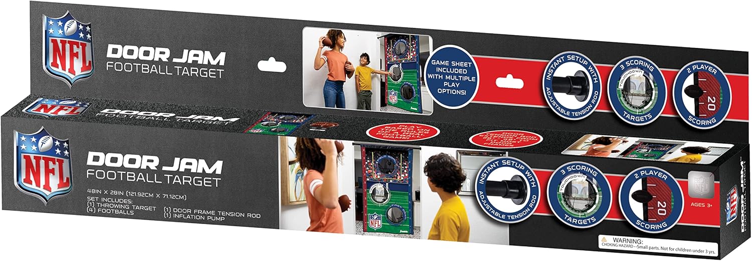 | Included Components | (1) NFL door jam football target, (1) door frame tension rod, (2) dual-purpose scoring & storage clips, (1) pump with needle |