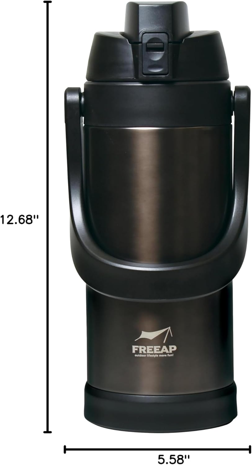 FREEAP K-10818 Insulated Water Bottle, Large Capacity, 2 Liter, Sports Jug, Wide Diameter, Easy to Clean, Outdoor Use, Metallic Gray