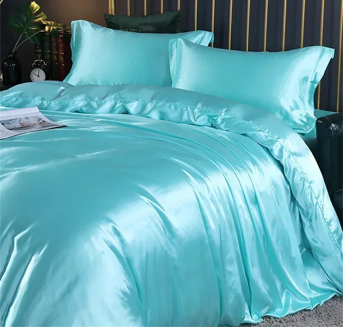 Material:70% Mulberry Silk+30% Ice Silk (Polyester)Process Technique:BasicSuitable Region:North AmericaFabirc Style:SATINFabirc Construction:150GsmWeight:1.3-2.2KgColor Fastness (Grade):National StandardsApplication Size:1.0M (3.3 Feet),1.2M (4 Feet),1.35M (4.5 Feet),1.5M (5 Feet),1.8M (6 Feet),2.0M (6.6 Feet),2.2M (7 Feet)Quantity:4 PcsStyle:SolidType:Duvetcover&2Pcs Pillowcase&1 Fitted Sheet