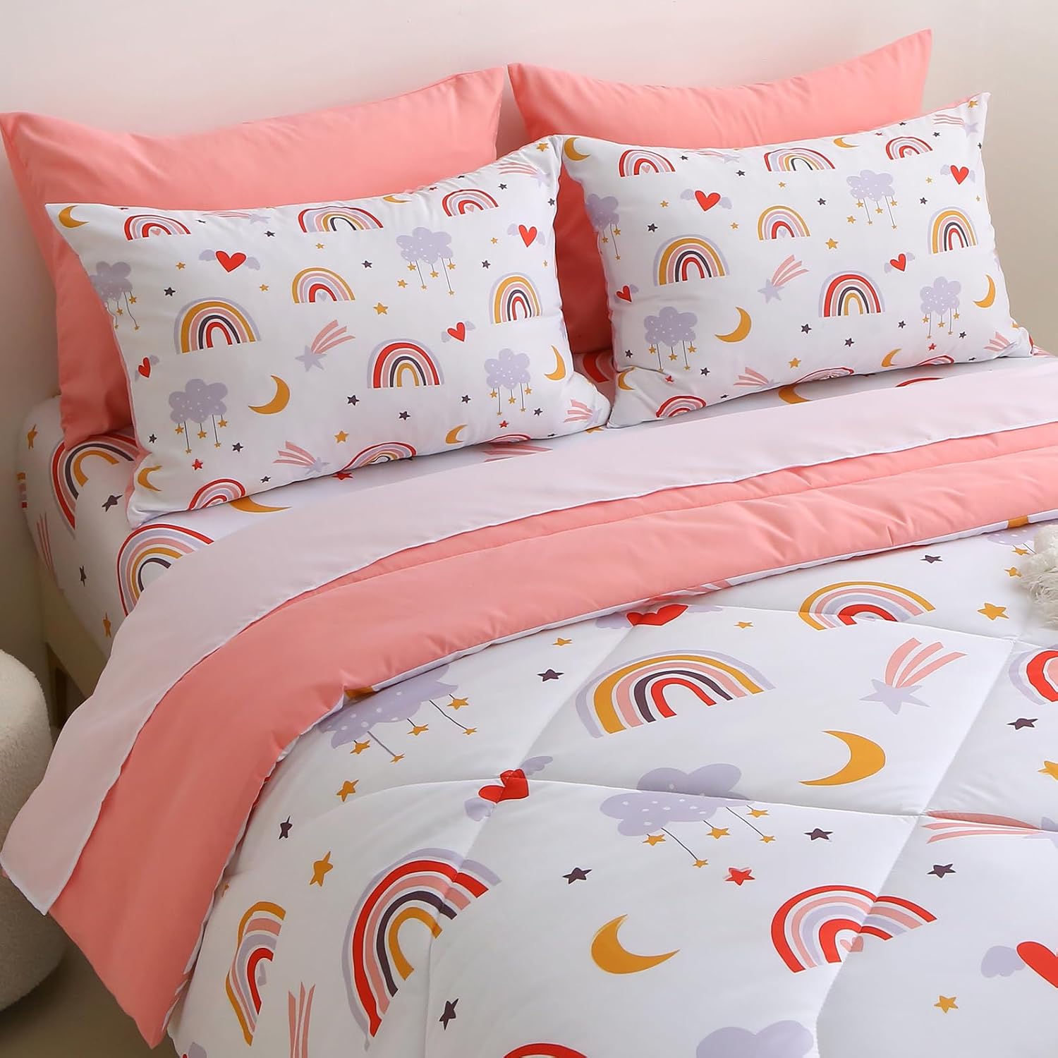 • EASY CARE & LONG-LASTING QUALITY Machine washable in cold water, tumble dry low — designed for busy parents. Reinforced stitching prevents filling shift or clumping, so your full bedding stays fluffy and fresh through countless nights of imaginative play.