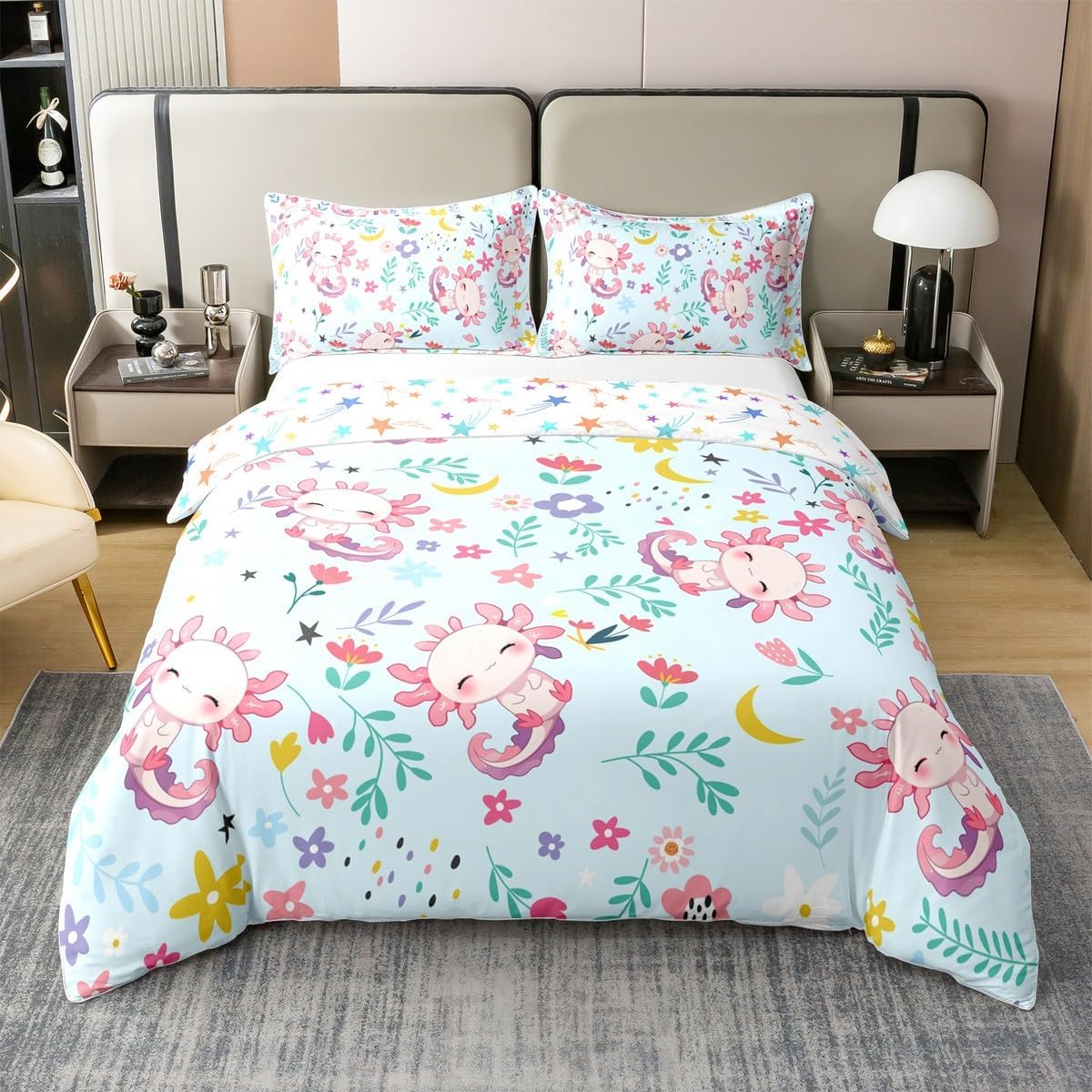Package Include: Duvet Cover and Pillowcase, no comforter or sheet Quality duvet cover set pattern bedding set, simply decorating your rooms any time you want, bringing you fresh feel for year round use Material: Made from 100% Cotton Size Information: Twin size 2pcs duvet cover set: 1 Duvet Cover 68" x 90" 173 x 229cm, 1 pillowcase 20" x 30" 51x75cm Full size 3pcs duvet cover set: 1 Duvet Cover 80" x 90" 200 x 229cm, 2 pillowcase 20" x 30" 51 x 75cm Queen size 3pcs duvet cover set: 1 Duvet Cover 90" x 90" 229 x 229cm, 2 pillowcase 20" x 30" 51 x 75cm King size 3pcs duvet cover set: 1 Duvet Cover 104" x 90" 264 x 229cm, 2 pillowcase 20" x 36" 51 x 92cm Personalize your bedroom: Beautiful design and colorful print, making your bedroom unique and bringing you a wonderful dream Washing instructions: Machine wash separately in cold water, hang dry, do not bleach Occasion: The cute soft duvet cover bedding sets designed for children, adults, men, women, teens. This duvet cover set is also suitable for all seasons, spring, summer, autumn and winter. Warm Tips: There may be some slight differences between the color tone of the pictures and that of the actual items due to lighting effects, monitor's brightness, etc.