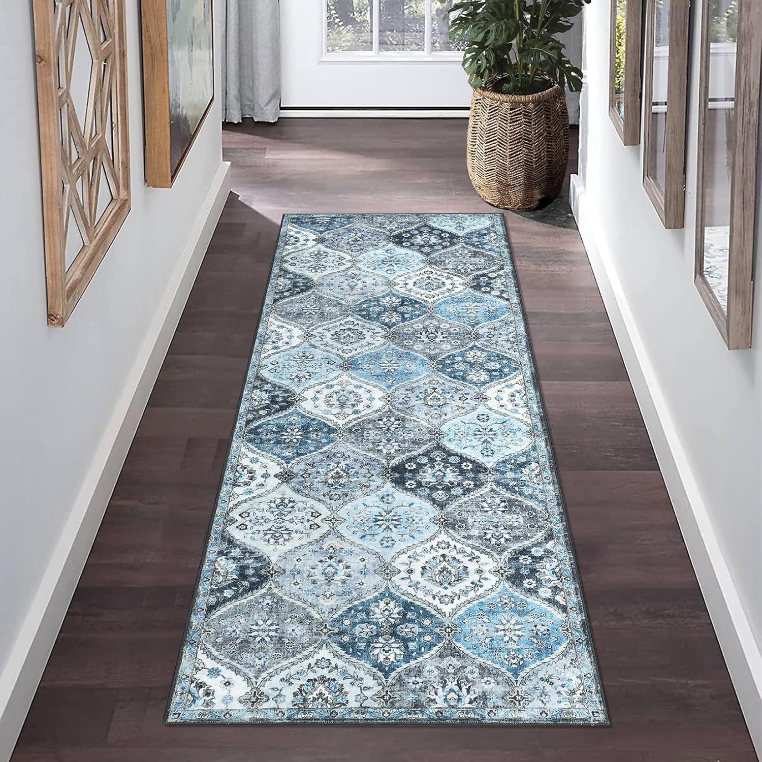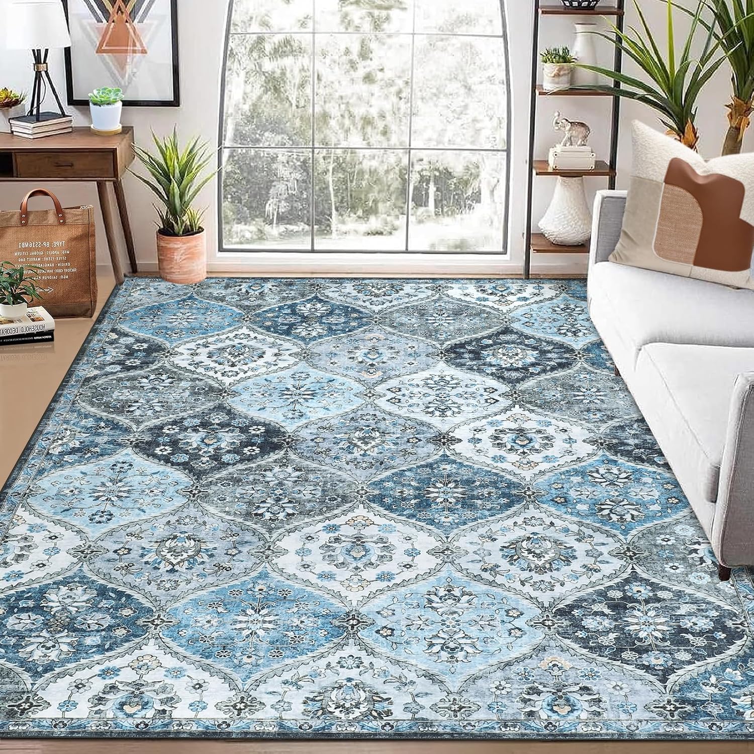 GAOMON Machine Washable Area Rug 5x7 Moroccan Trellis Area Rug for Living Room Bedroom Vintage Medallion Floral Non-Slip Stain Resistant Accent Rug Carpet for Home Decor, Cream/Multi
