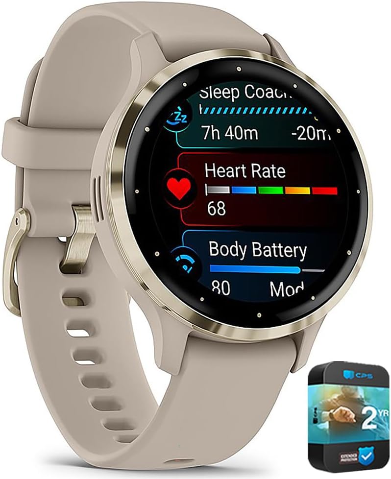 Key Features BODY BATTERY ENERGY MONITORING See your energy levels throughout the day so you’ll know when your body is charged up and ready for activity or drained and needing to recharge with restful sleep. And get even more details and personal insights on how sleep, naps, daily activities and high stress specifically impact your energy. SLEEP COACH Get a sleep score and personalized coaching for how much sleep you need and how you can improve. Even keep track of different sleep stages and naps — and see several key metrics over your sleep period, such as HRV status to better understand your health. BUILT-IN SPORTS APPS Track all the ways you move with more than 30 preloaded GPS and indoor sports apps - including walking, running, cycling, pool swimming, activities for wheelchair users and more. BUILT-IN SPEAKER AND MICROPHONE When paired with your compatible smartphone, make and take phone calls right from the watch. Plus, use your smartphone’s voice assistant to respond to text messages and more. WORKOUT BENEFIT AND RECOVERY TIME Better understand how each workout affects your body and how much time you need to recover so you can take on any fitness challenge. MORNING REPORT Receive an overview of your sleep, recovery, daily calendar, HRV status and more as soon as you wake up. You can even customize your report to show what you want to see. HEALTH NAP DETECTION Automatically track or log your naps to see how they benefit your body and the ideal time and duration they should be. HRV STATUS Gain a deeper understanding of your overall health through heart rate variability while you sleep. WRIST-BASED HEART RATE The Venu 3S smartwatch constantly samples your heart rate, so you can stay in the know all day and night STRESS TRACKING Find out if you’re having a calm, balanced or stressful day. WOMEN’S HEALTH TRACKING Track your menstrual cycle and pregnancy and get exercise and nutrition education. HEALTH SNAPSHOT Log a 2-minute session to record key health stats, then generate a report to share with your health care provider. PULSE OX SENSOR Track your blood oxygen saturation while you’re awake or asleep. FITNESS WHEELCHAIR MODE Track your daily pushes, plus get weight shift alerts, sports apps and workouts for wheelchair users, and more. ANIMATED ON-SCREEN WORKOUTS Follow preloaded animated workouts for strength, HIIT, yoga and more, available in the Garmin Connect app GARMIN COACH Get free adaptive 5K, 10K and half-marathon training plans from expert coaches.