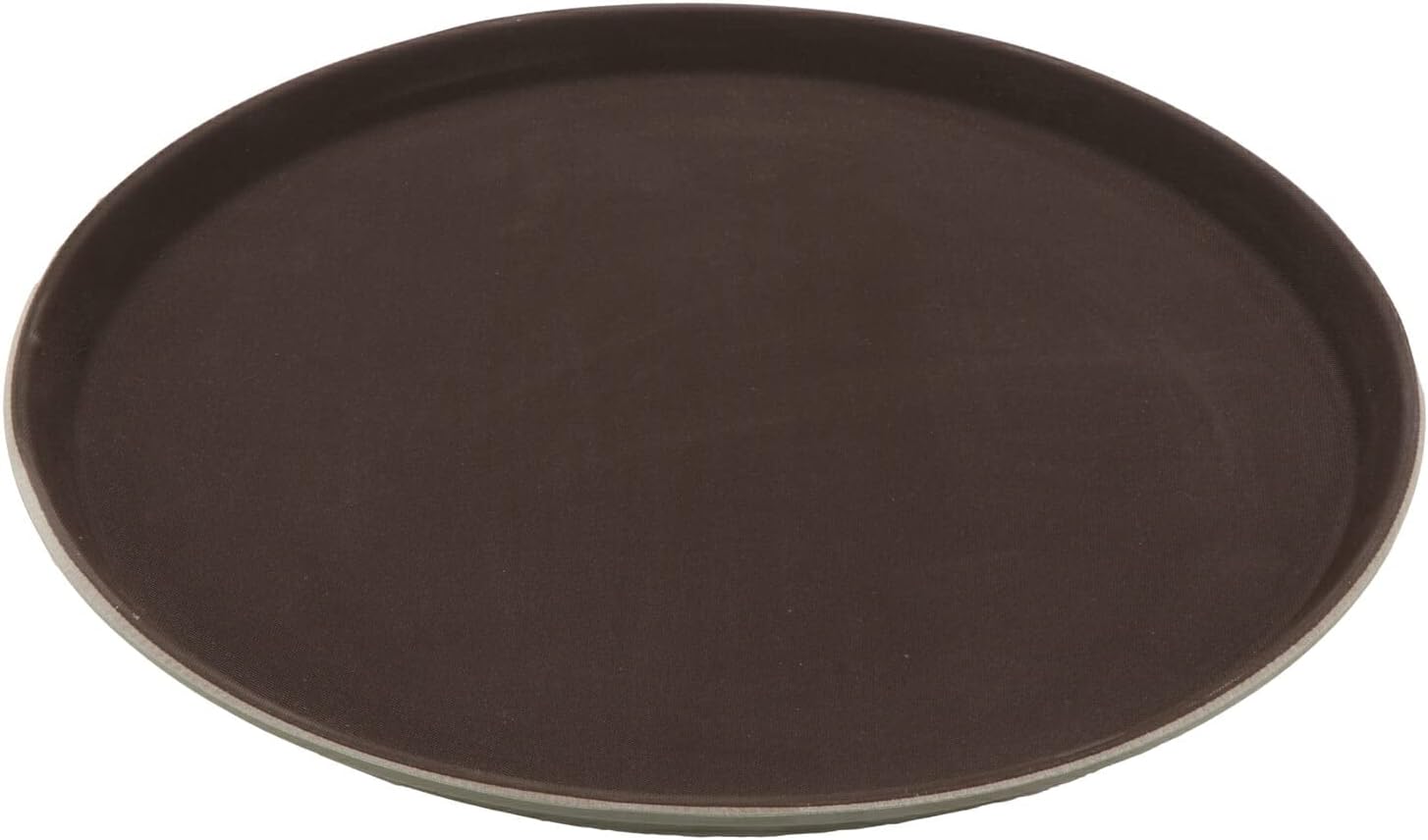 G.E.T. Enterprises RCT-16-NS Brown 16" round non-skid tray, serving trays Collection (Qty, 12) polypropylene. Length: 14.25 inches, width: 6.75 inches, height: 14.75 inches.
