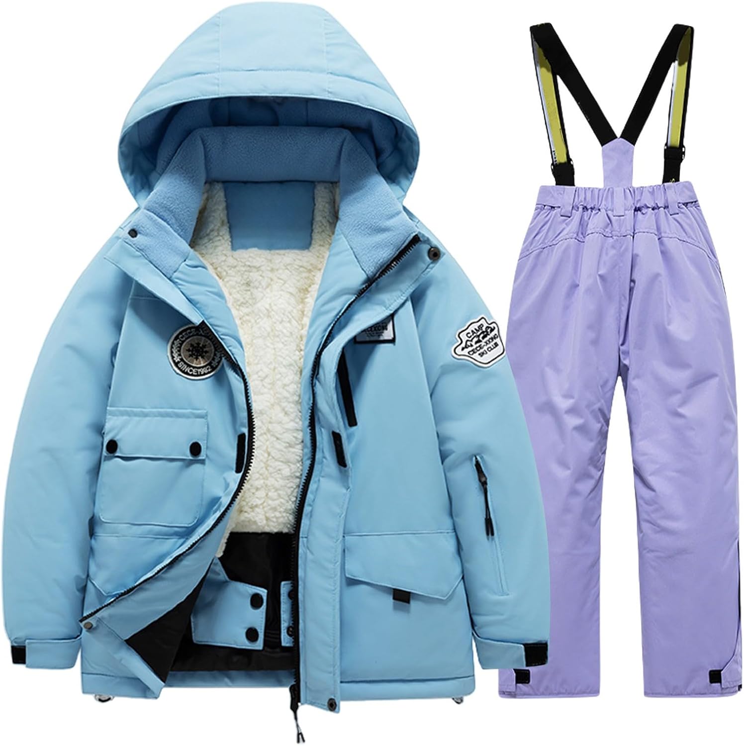 Kids snow suit is made from durable, warm and comfortable materials that offering insulation while remaining lightweight and easy to wear. Water soft fleece lining keep dry and comfortable. Detachable storm hood with inner extended elastic hem, windproof and warm. 𝗗urable front zipper closure with covering placket double 𝗽revent the cold air. Elastic cuffs and durable materials for 𝗽rotection against snow and wind. For skiing, snowboarding, hiking, climbing, traveling and other winter outdoor sports.