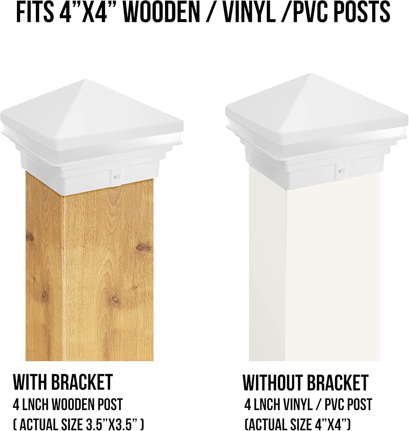 GKOLED 6-Pack 4" x 4" White Vinyl Post Top Caps with 4-Pack Low Voltage LED White Pyramid Post Cap Lights