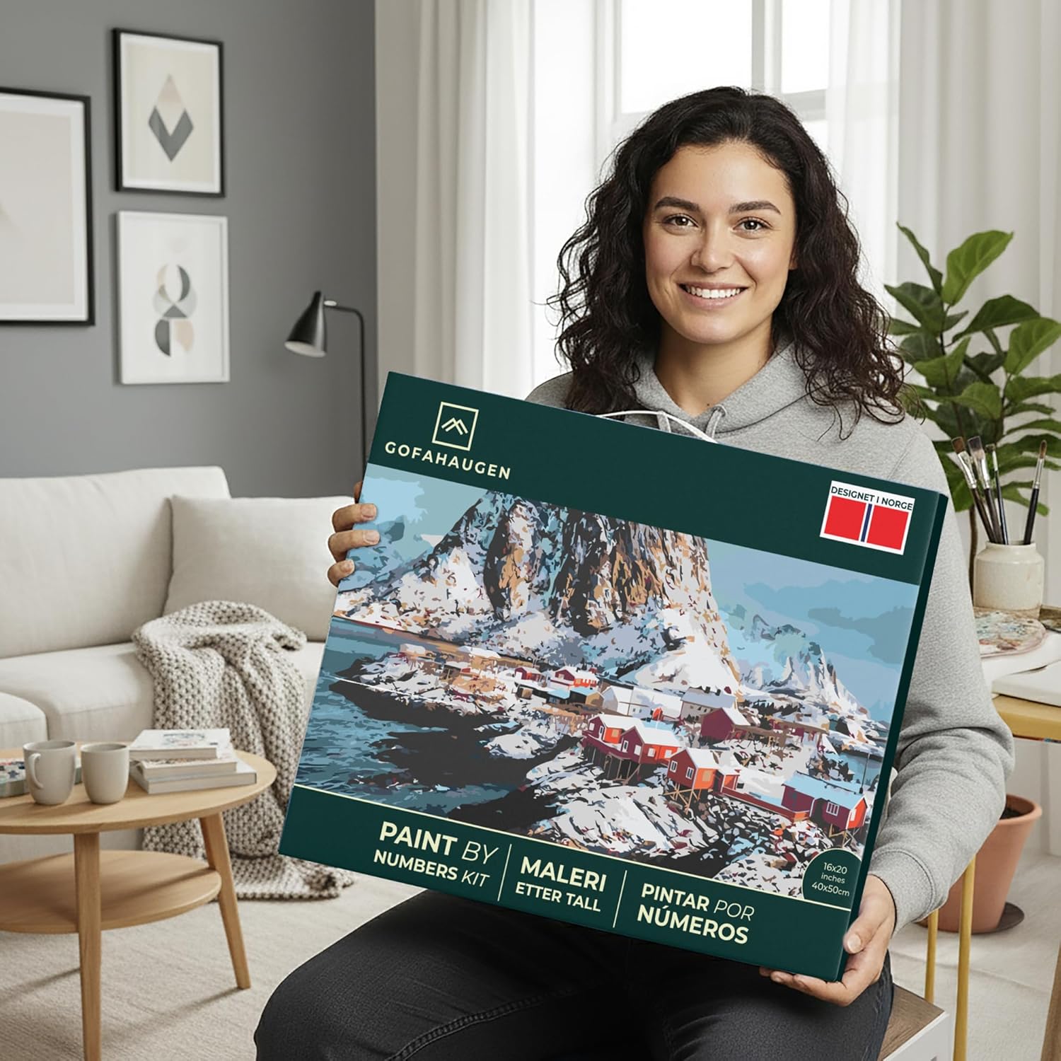 Discover the joy of creativity with our Paint by Numbers for Adults, designed in Norway with the highest Nordic quality standards. This complete painting kit provides everything you need to create a stunning landscape artwork, whether you are a beginner or an art enthusiast.The set includes a premium framed canvas with clear pre-printed numbers, twenty-four vibrant acrylic paints, and a detailed blueprint to guide your artistic journey. Unlike other kits, this package comes with customized high-quality brushes and a sturdy DIY pinewood easel, making the painting process easier and more enjoyable.Painting by numbers is more than just a hobbyβit is a calming and mindful activity. It helps reduce stress, improve focus, and encourages creativity, making it the perfect way to relax after a busy day. Once completed, your painting becomes a unique decoration for your home, adding warmth and character to any room.This kit also makes a thoughtful and original gift. Whether for birthdays, holidays, or simply as a way to surprise a loved one, it is a creative present that brings both joy and relaxation. Each detail of the set reflects the dedication of a family-owned Norwegian company committed to quality and design.Bring the beauty of Nordic landscapes into your home and experience the satisfaction of creating your own artwork with this all-in-one paint by numbers kit.