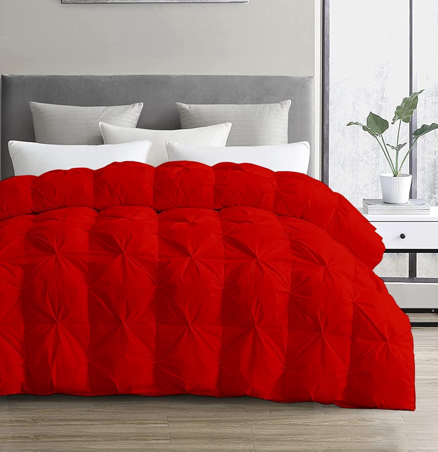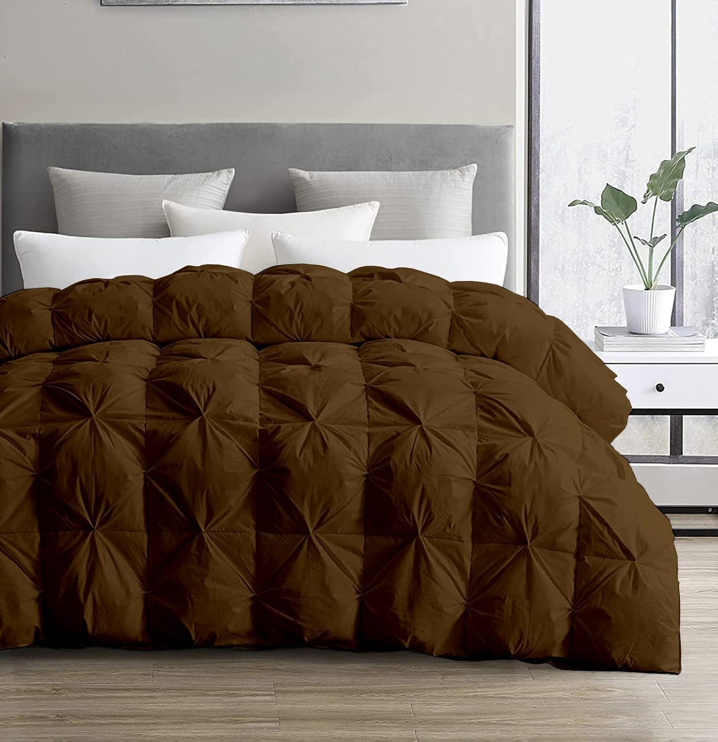 CHESS BED Gold Down Alternative Pinch Pleated Comforter- Eastern King Size 118 x 110 Inches 1 Piece All-Season Duvet Insert, 500 GSM with Corner Tabs 100% Egyptian Cotton- (Gold Solid)