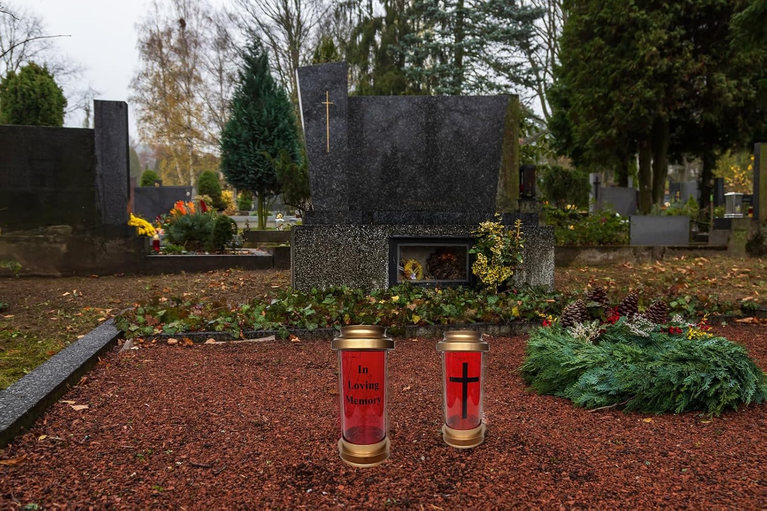 Gold candle holders with metal frame + red acrylic tube, anti-corrosion and weather-resistant, suitable for long-term solar outdoor lights decorative use. Extra-long ground decorative garden stakes ensures stable installation even on uneven gravesites. Solar powered fire flame design garden light avoids frequent battery replacement, keeping the memorial lanterns for loss of loved one on day and night.