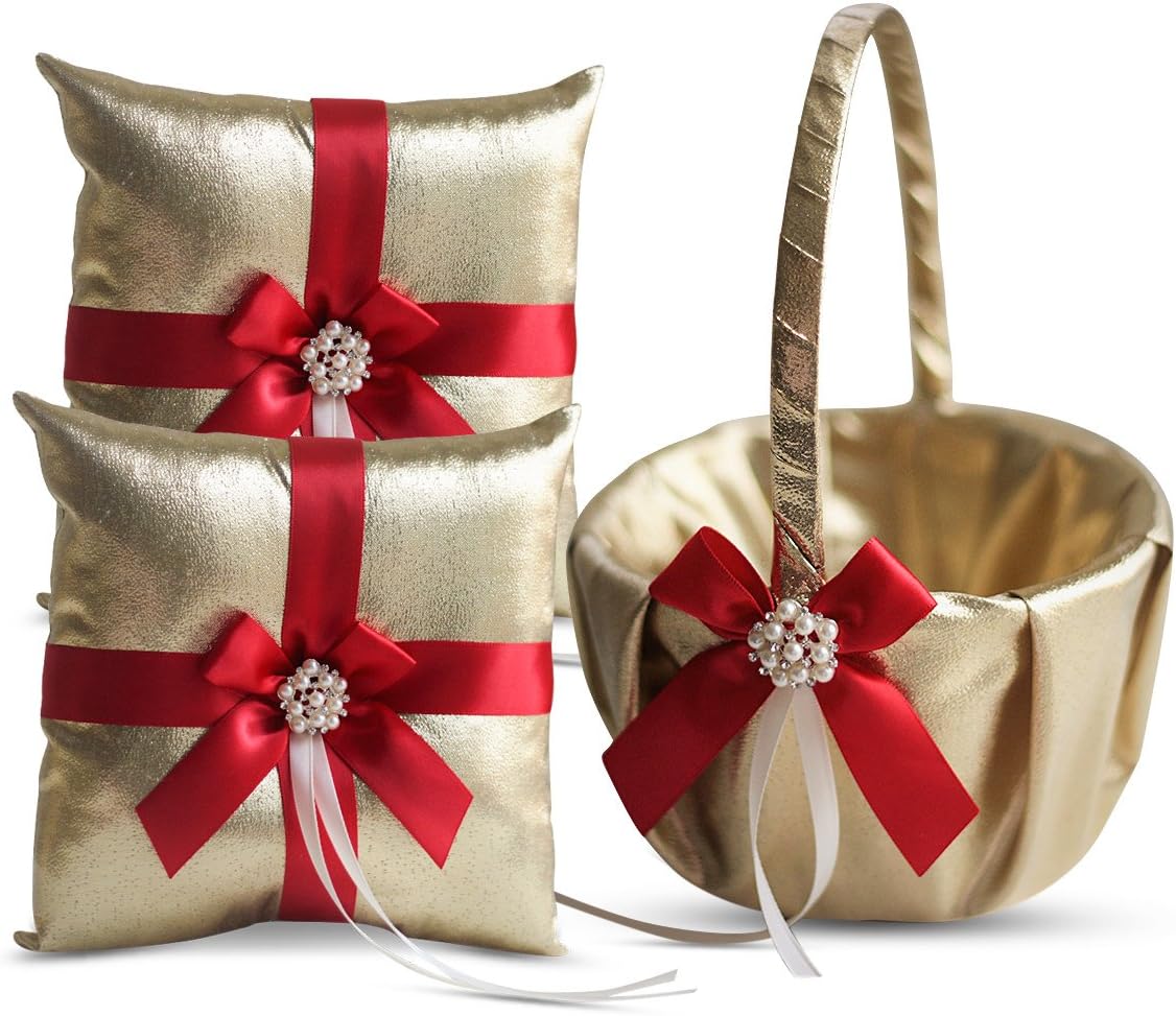 Make your wedding an affair to remember, let the ring bearer & flower girl set the tone of the wedding, and create memories that are unforgettable – stick to the golden rule, and get gold pillow & basket set that’s preferred choice of those tying the knots around the world. ALEX EMOTIONS RING BEARER PILLOW & BASKET SET -Though a new launch on Amazon, our wedding sets have been making the world go gaga over them for way longer -Handcrafted with love, you can expect a high level of attention to details and superior finish -Thoughtfully designed sizes that perfectly fit the hands of adults as well as youngsters -Not just a matter for a few minutes but lifetime as the memories that are captured in pictures & videos remain with you forever – class & elegance never go out of fashion -Attached slander strands of ribbons help tie the ring to prevent slips & drops – especially important when the ring bearer pillow is being carried by a kid -Designed to ooze luxury and aesthetic appeal, these are ideal for people with sophisticated taste -Imagine the ring bearer carrying golden pillow with diamond ring & and flower girl walking down the aisle with basket containing fragrant rose petals -Colors or ribbons can be customized to ensure coordination with your dress or wedding theme – please choose your ribbon option-Ring bearer pillow comes in 7" x 7" (17.8 x 17.8 cm) & basket in 6.3" diameter-Post wedding, these can be used as decorative pieces at home 100% RISK-FREE SATISFACTION GUARANTEE We also offer you 7 DAYS Returns & Replacement guarantee to let you buy with confidence; no questions asked. So, why think twice?ORDER NOW & Get this Incredible Wedding Ceremony Set for the most Amazing Event of your life!