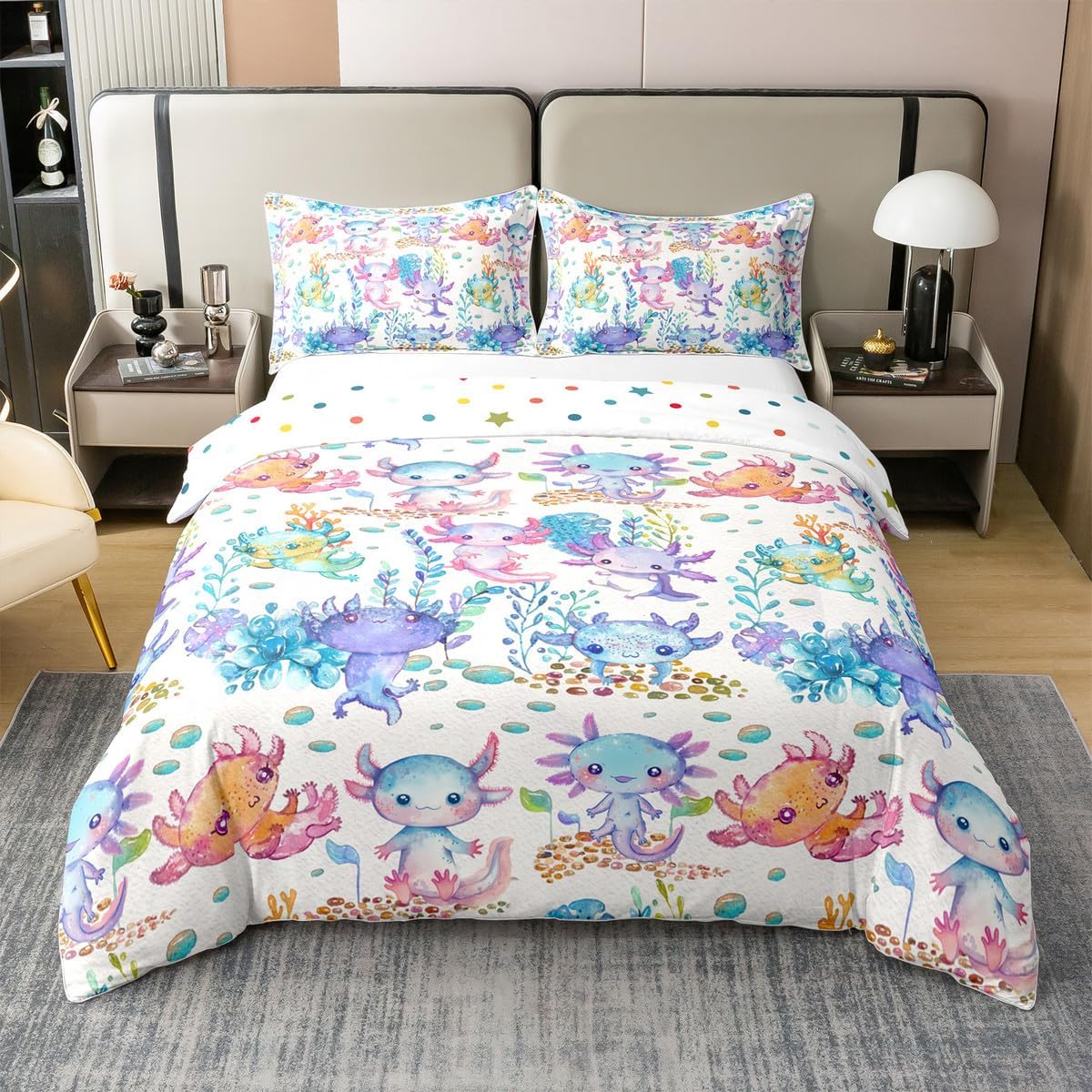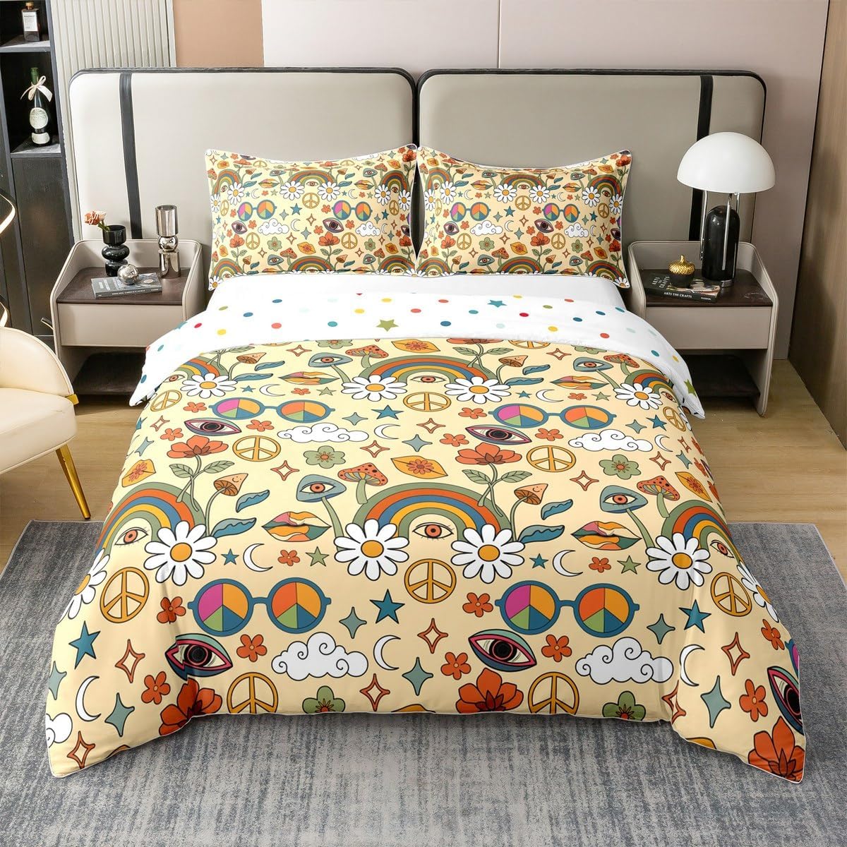 Package Include: Duvet Cover and Pillowcase, no comforter or sheet Quality duvet cover set pattern bedding set, simply decorating your rooms any time you want, bringing you fresh feel for year round use Material: Made from 100% Cotton Size Information: Twin size 2pcs duvet cover set: 1 Duvet Cover 68" x 90" 173 x 229cm, 1 pillowcase 20" x 30" 51x75cm Full size 3pcs duvet cover set: 1 Duvet Cover 80" x 90" 200 x 229cm, 2 pillowcase 20" x 30" 51 x 75cm Queen size 3pcs duvet cover set: 1 Duvet Cover 90" x 90" 229 x 229cm, 2 pillowcase 20" x 30" 51 x 75cm King size 3pcs duvet cover set: 1 Duvet Cover 104" x 90" 264 x 229cm, 2 pillowcase 20" x 36" 51 x 92cm Personalize your bedroom: Beautiful design and colorful print, making your bedroom unique and bringing you a wonderful dream Washing instructions: Machine wash separately in cold water, hang dry, do not bleach Occasion: The cute soft duvet cover bedding sets designed for children, adults, men, women, teens. This duvet cover set is also suitable for all seasons, spring, summer, autumn and winter. Warm Tips: There may be some slight differences between the color tone of the pictures and that of the actual items due to lighting effects, monitor's brightness, etc.