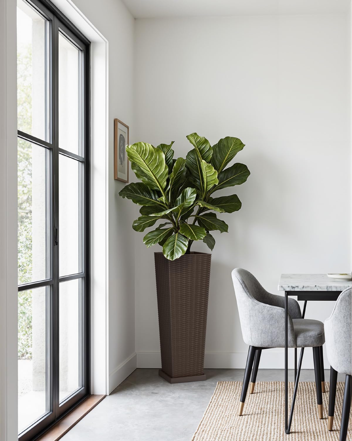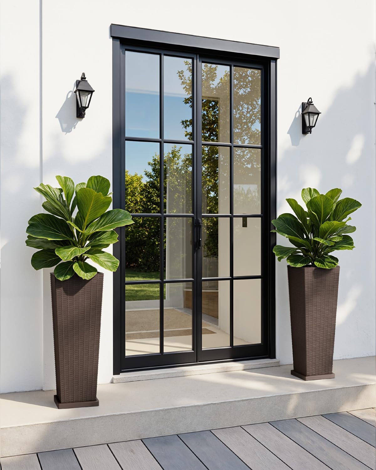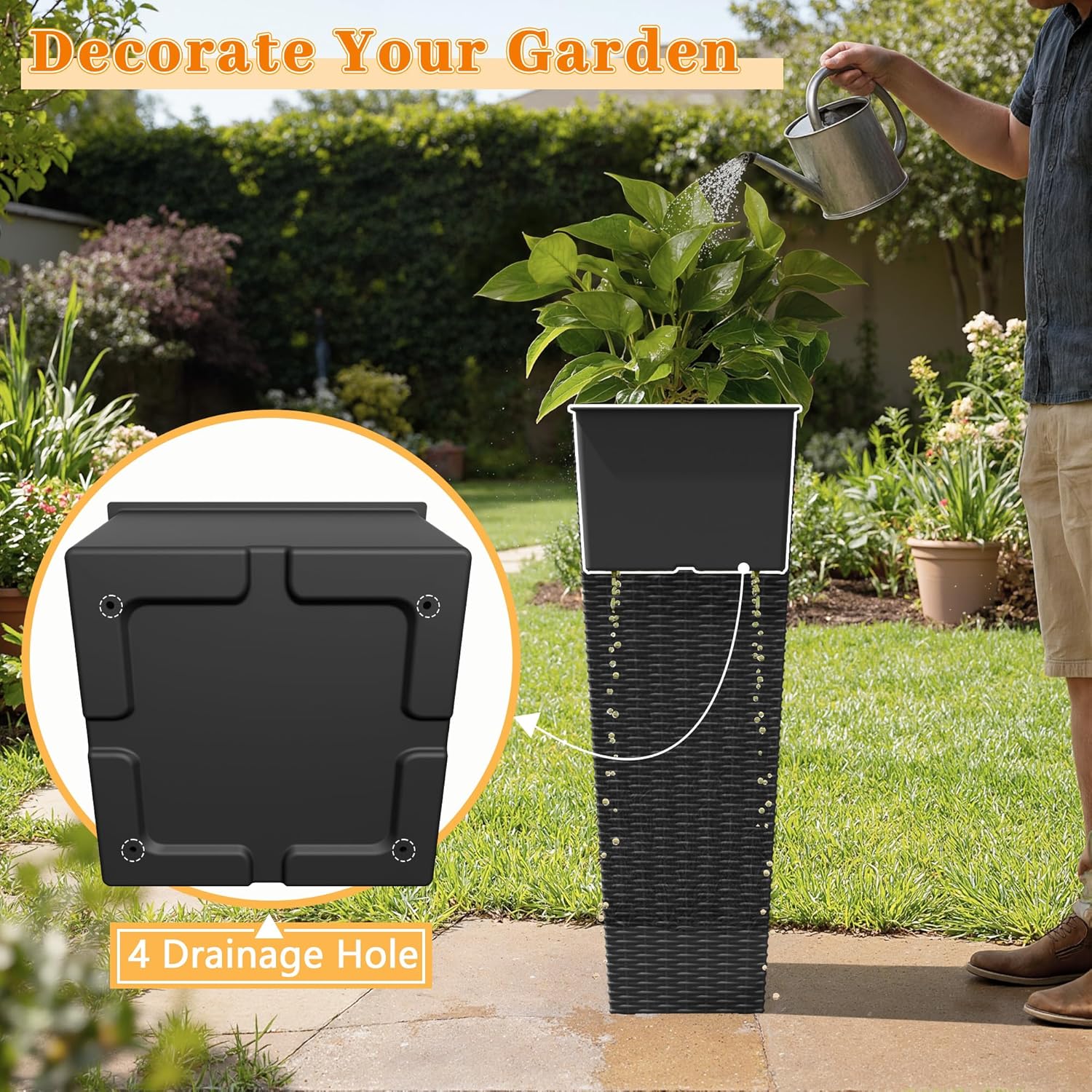 Greesum Large Tall Planter for Outdoors Plants Specification: Color: Brown Material: PP Large Taper Planter Size : 8 inches x 8 inches x 32 inches Small Taper Planter Size : 6.5 inches x 6.5 inches x 24 inches Large Weight: 18.08 lbs Small Weight: 10.14 lbs Large Package Size : 38.98 inches (L) x 13.19 inches (W) x 12.6 inches (H) Small Package Size : 29.92inches (L) x 10.83 inches (W) x 10.63 inches (H) Package Includes 2x Taper Planter Caution. Due to lighting or settings at the time of shooting, there may be some differences in the color of the photo and the item.