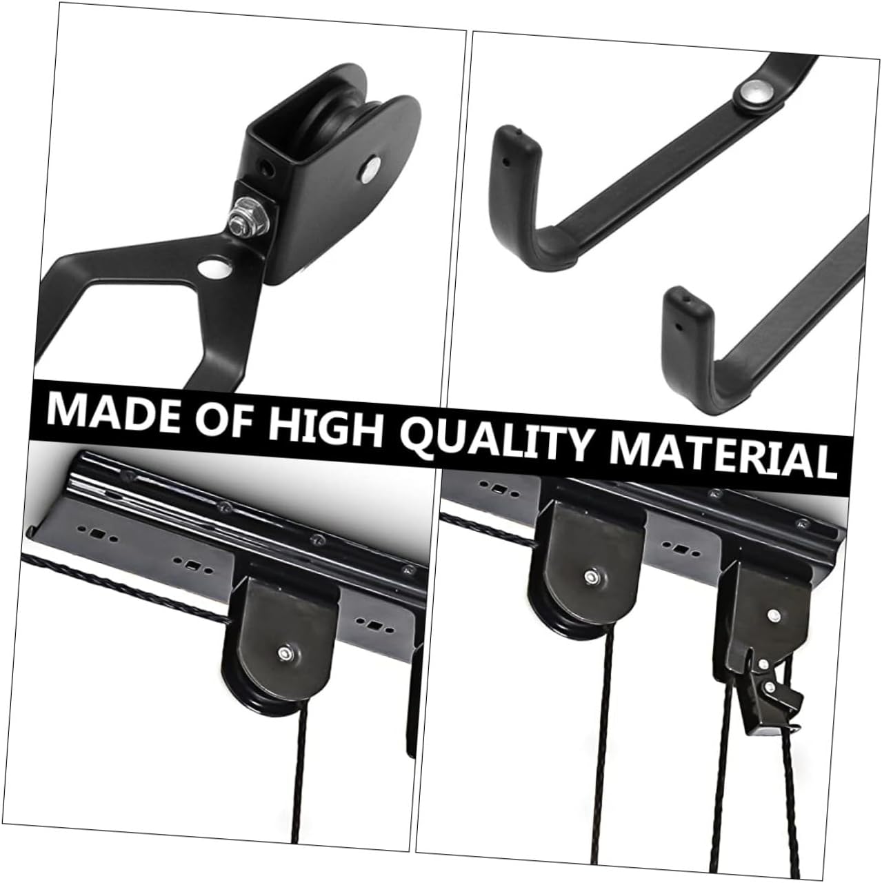 Package Include 1 screws 1 screw covers 1 set x bike ceiling rack 1 x 15m rope Features -Product Info:Wall rackGoods DescriptionBike Wall Stand Holder - As comes with a convenient pulley system, the bike hoist is easy to be mounted and dangle in the ceiling.Rack - Size: 26x13x10.Bike Wall Hook 22x5.Wall Mounted Bike Hanger 13inch.Hanging Rack The bike hoist uses a rope and pulley system that is mounted to your ceiling.Bike Hoists Smooth pulleys and latches make lifting even heavy bikes super easy.Bike Ceiling Mount - Material: Steel.Bike Ceiling Rack - The bike ceiling hoist uses locking mechanism to lock the bike in place and prevent the bike accidental release and falling down.Hanger - Save space.Ceiling Hook The exclusive rope locking mechanism prevents unwanted release and can suspend one bike.Bike Hanger This hoist is and perfect to meet storing needs.Indoor Bike Storage Rack When you’re , just unlock the rope, lower your bike and enjoy your riding.Indoor Bike Hoists - Just attach the hooks to bike, , smooth pulleys and latches make lifting even heavy bikes easily. - The is designed to ceiling mounted for bike storage in garage or other place when the bike is not used. Features - Color: Black. 11x4. 5cm / 10