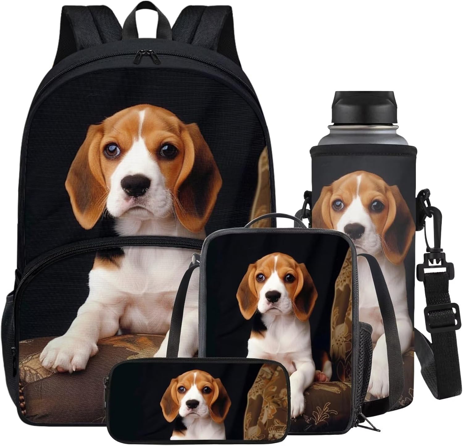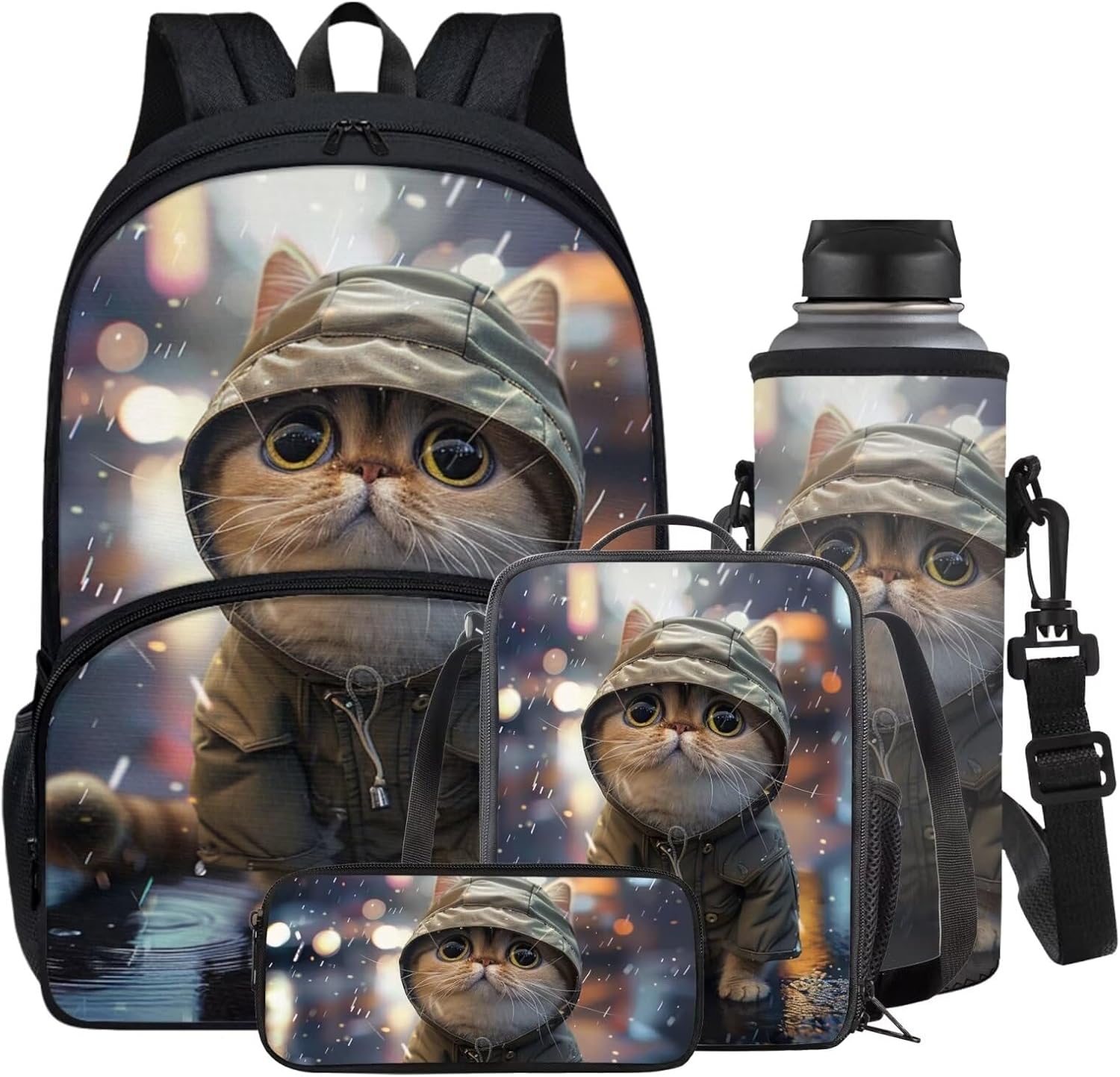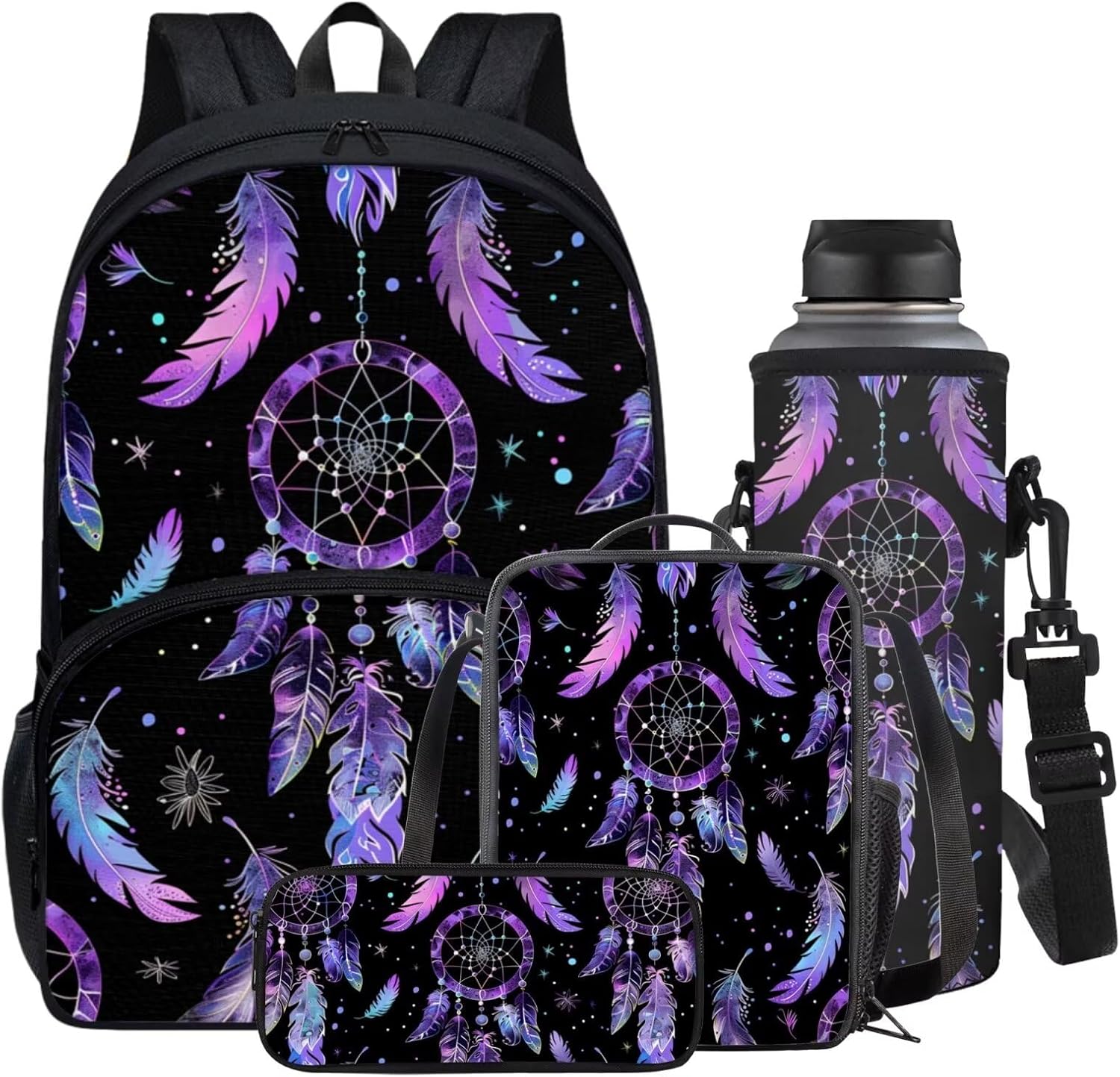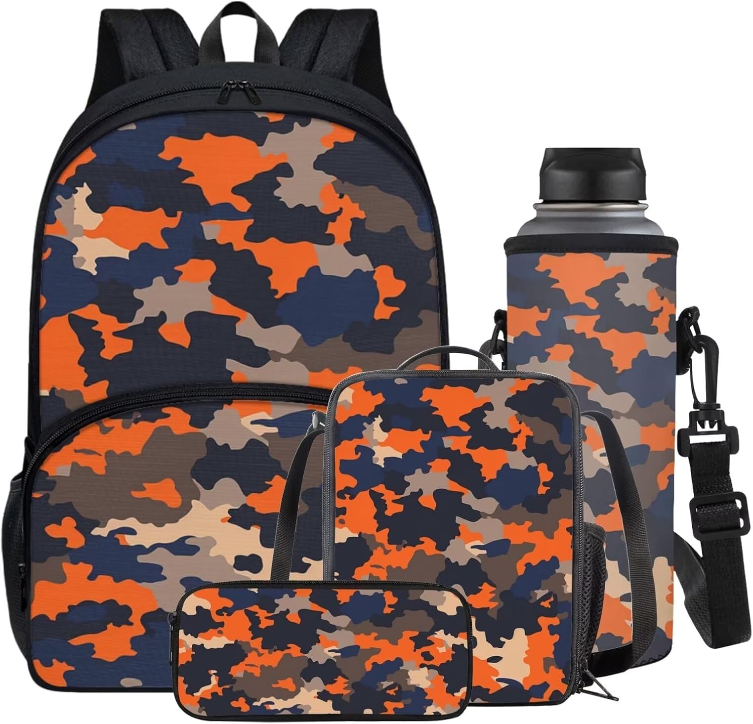 Welcome to Horeset, where we offer a diverse range of products to enhance your lifestyle with style and functionality! Introducing our 4-Piece Package: ★Kids Backpack: Perfect for children aged 5-16 years, this backpack is crafted from high-quality polyester fabric, making it washable, lightweight, and durable. Ideal for playtime, kindergarten, school, or day trips. ★Lunch Bag: An insulated, lightweight, and foldable bag with a padded handle and smooth zipper. It provides excellent insulation and heat preservation, making it perfect for packing lunches for school, work, picnics, or travel. ★Zippered Pen Pouch: Versatile 600D polyester pouch suitable for storing pens, cell phones, cosmetics, or office stationery. Ideal for use at home, in the office, during travel, or shopping trips. ★Water Bottle Sleeve: The water bottle sleeve is made of polyester fiber, which prevents scratches and protects the surface of the water cup, suitable for indoor and outdoor activities, such as running, sports, jogging, hiking, camping Features of the Backpack: -Comfortable to carry with adjustable padded shoulder straps that reduce pressure. The thickened and breathable design ensures comfort during extended wear. -Multifunctional use as a school bag, daily backpack, or leisure backpack. Suitable for various activities like school, shopping, traveling, camping, and more. Additional Information: -Wash with normal temperature water; avoid hot water and wash separately to prevent staining. -Normal color differences between the product and the picture may occur due to lighting or screen display variations. -For any queries or assistance, please feel free to contact us. -This 4-piece set makes a perfect gift for birthdays, back-to-school season, Thanksgiving, Christmas, or New Year celebrations for your family, friends, kids, or even yourself. Upgrade your lifestyle with these stylish and practical essentials from Horeset!