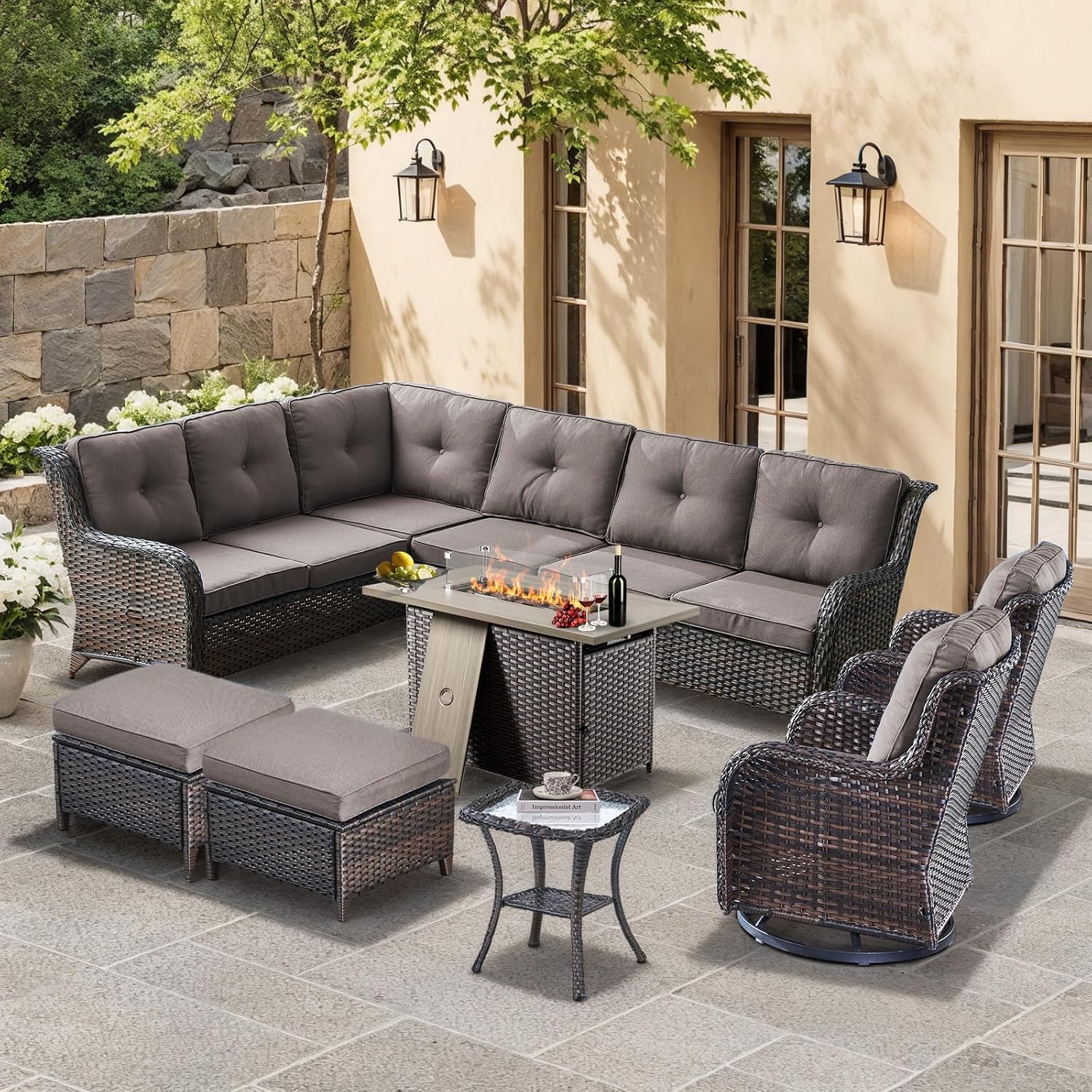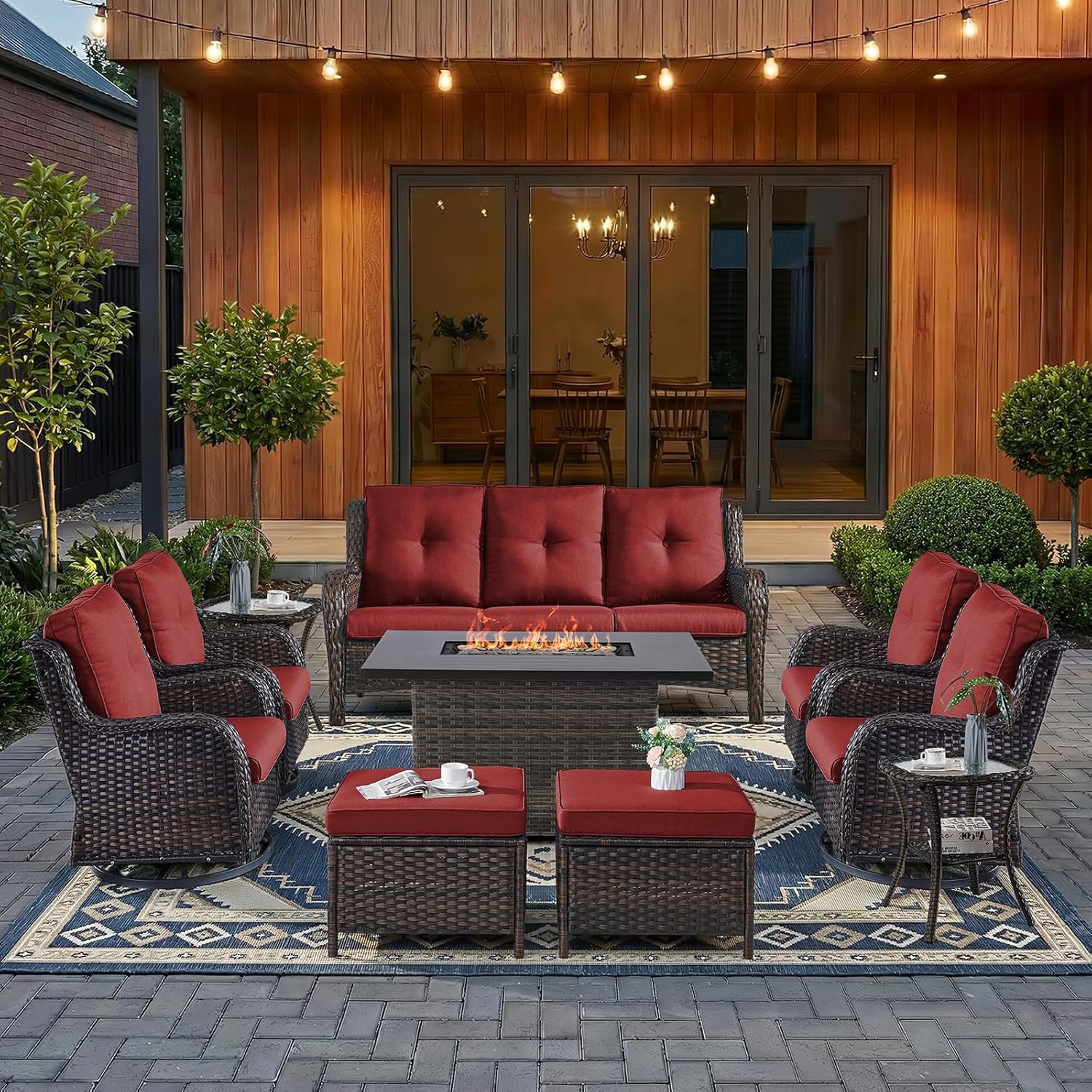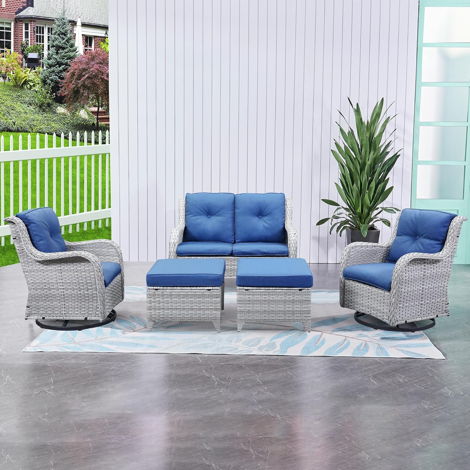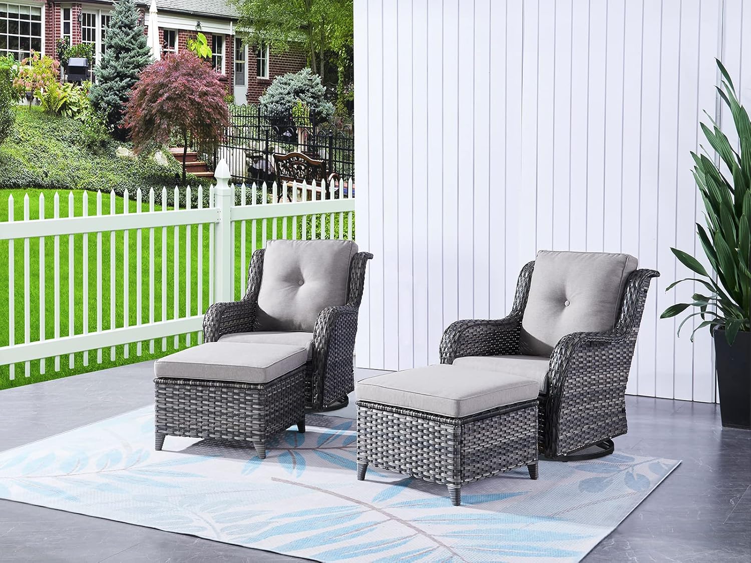 Brand:HUMMUH The patio rocking chair has a stable and secure chassis that allows you to gently rock back and forth or rotate 360 degrees safely. The rock design allows your body to swing back and forth easily to release stress and fatigue, and enjoy your low tea time happily. The swivel design allows you to rotate easily 360°freely to entertain and relax, and enjoy the fun of life without restraint. 100% Handmade Strong Rattan & High-Density Iron Frame: The patio swivel rocking chair set is crafted from sturdy steel construction and provides extra support and balance for chairs. The 5-inch high density foam cushion brings you excellent sitting experience. Brown metal rattan coffee table and patio swivel wicker rocking chairs are suitable for a variety of scenarios, indoor, outdoor garden, balcony, deck, park, patio, porch, poolside, yard, corridors, sun rooms, etc.Patio conversation sets is weather resistant and requires no special maintenance. Elegant Side Table: 3 piece wicker swivel rocking outdoor chairs include a tempered glass side table to complement your patio nook, and provides an easy-to-clean surface. 100% WORRY-FREE ORDER:The 3 Pieces Outdoor Swivel Rocker Patio Chairs covers a 1-year manufacturer warranty, 100% satisfaction, Lifetime Support. Any doubt or assistance please feel free to contact us.