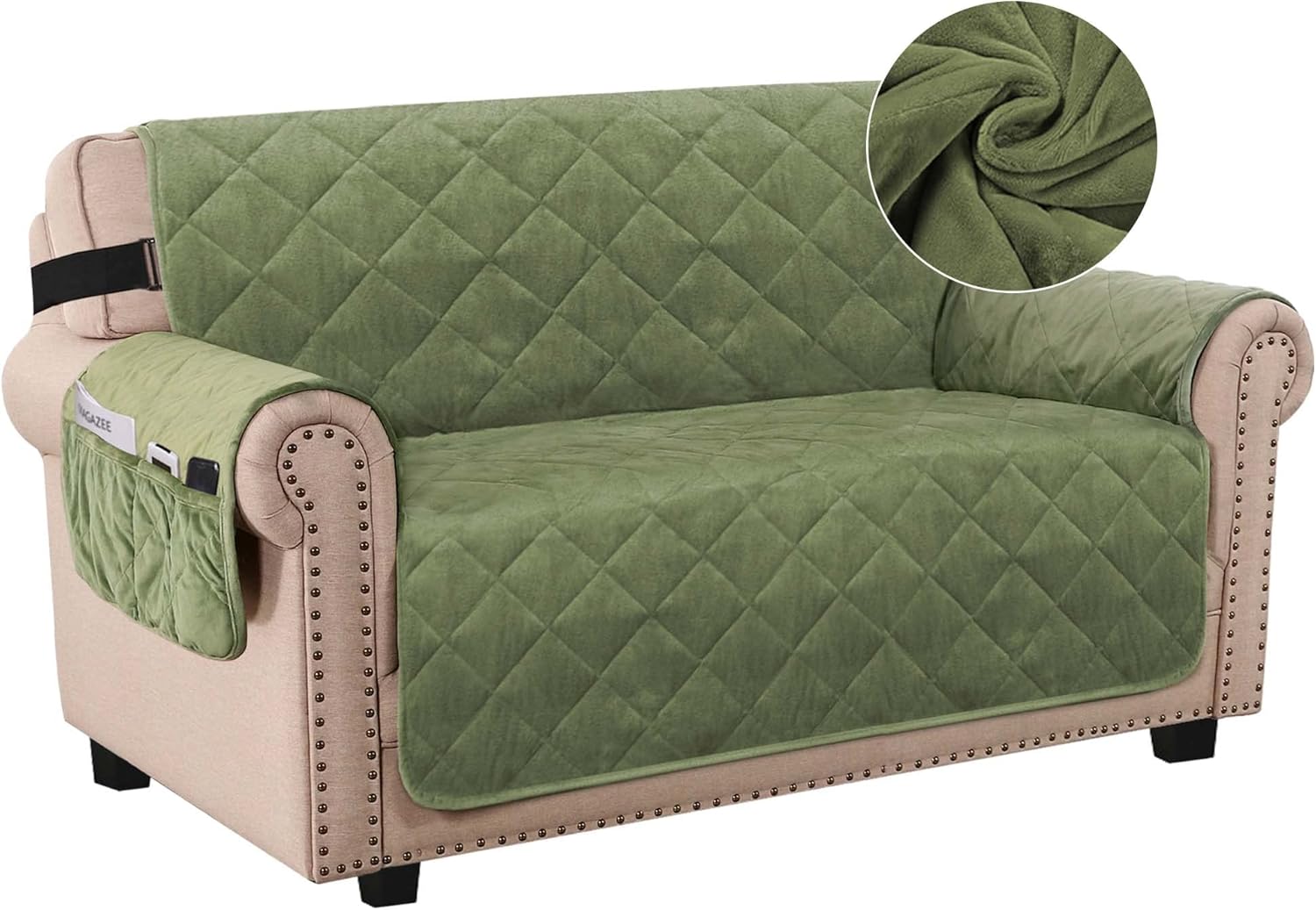Special Features Include TWO(2) PCS of upgraded 2" wide and long enough adjustable elastic straps (with strong steel hook) and the non-slip PVC backing to secure the protector in place firmly and help prevent slipping and sliding., Real velvet plush fabric, provide guests with a more soft, smooth, thick and comfortable seating option., The quilted seam design pampers your body when you watch TV or read while seated on sofa, chairs and loveseat., Ultra soft velvet non-slip furniture protector freshen up your home decor and protect your furniture, they are the perfect combination of stylish and function.