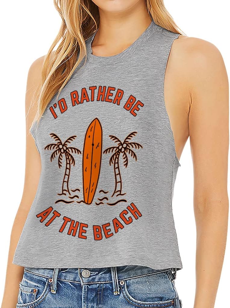 Cute and flattering I'd Rather Be at the Beach Racerback Cropped Tank is suitable for most indoor or outdoor activities, such as gym, yoga, running, hiking, beach or relaxing around the house. Pair Surfing Women's Tank with your favorite sports bras, especially strappy ones, and high-waisted leggings, then you will enjoy cool and comfortable exercise throughout the summer.