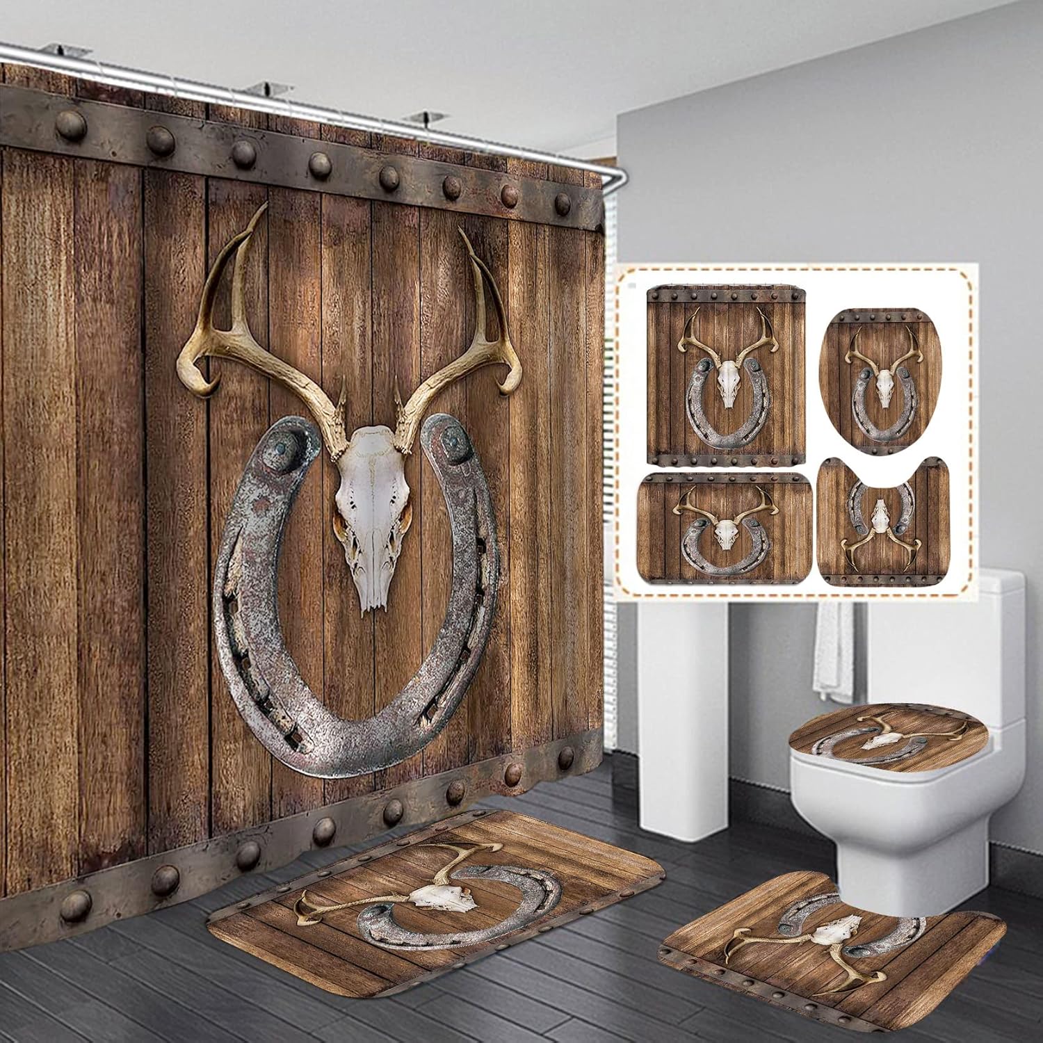 đABOUT "Jayden Madge"â„ Jayden Madge has independent design and its own factories.â„ After painstaking and constant selection and trial, Jayden Madge decided to use imported waterproof polyester and soft flannel to bring you fashion designs & ultimate comfort.â„ Each Jayden Madge product is meticulously handmade by well trained and skilled craftsman.â„ We believe that superior material, stylish design and first-class workmanship together can bring you a surprising experience. đWHAT'S IN THE PACKAGE?â„ 1 Piece Shower Curtainâ„ 3 Pieces Bath Mats ( 1 pc floor mat + 1pc toilet lid cover mat+ 1pc U-shaped mat )â„ 12 Pieces Shower HooksđFEATURESâ„Amazing Giftsâ„ Fashionable Designâ„ First-class Workmanshipâ„ Waterproof & Soft Fabric Shower Curtainâ„ Soft & Anti-slip RugsđSPECIFICATIONâ„ Shower Curtain 180*180 cm / 72*72 inchâ„ Floor Mat: 45*75 cm / 18*30 inchâ„ U Shaped Mat: 37*45 cm / 14.5*18 inchâ„ Toilet Lid Cover Mat: 39*44 cm / 15*17 inchđWARM TIPSâ„ Machine washable, wash in cold water, wash separately and hanging dry is recommended.â„ Shower curtain is machine washable. Wash it in water below 80â. Ironing within 200â. â„ Hand wash mats are recommended. Ironing within 200â. â„ Please allow a deviation of 1-2cm due to manual measurement.â„ Colors may vary slightly due to different picture resolutions and display settings of your computer.