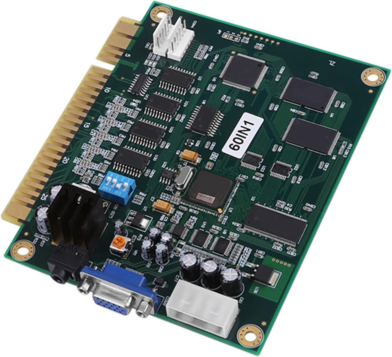 Specification:Features: Universal Jamma Connector. User friendly game selection screen. Play or Quarter/Token Option. New Score Saver. Supports CGA (standard resolution) and VGA (high resolution) monitors. Supports upright and cocktail cabinets (screen will automatically for second player). Supports trackball and/or joystick controls.Enable/disable specific games Standard Jamma video output or VGA output (hook PC monitor up directly) Vertical oriented Jamma board.Specifications:Material: Circuit boardOverall Size: 145 * 120 * 20mm/5.71 * 4.72 * 0.79inch Weight:144gPackage Included: 1 x Classic 60 in 1 Multicade PCB Board 1 x Owners ManualNote:-Due to the different monitor,the picture may not reflect the actual color of item. Thank for your understanding.-Please allow 1-3mm differs due to manual measurement.