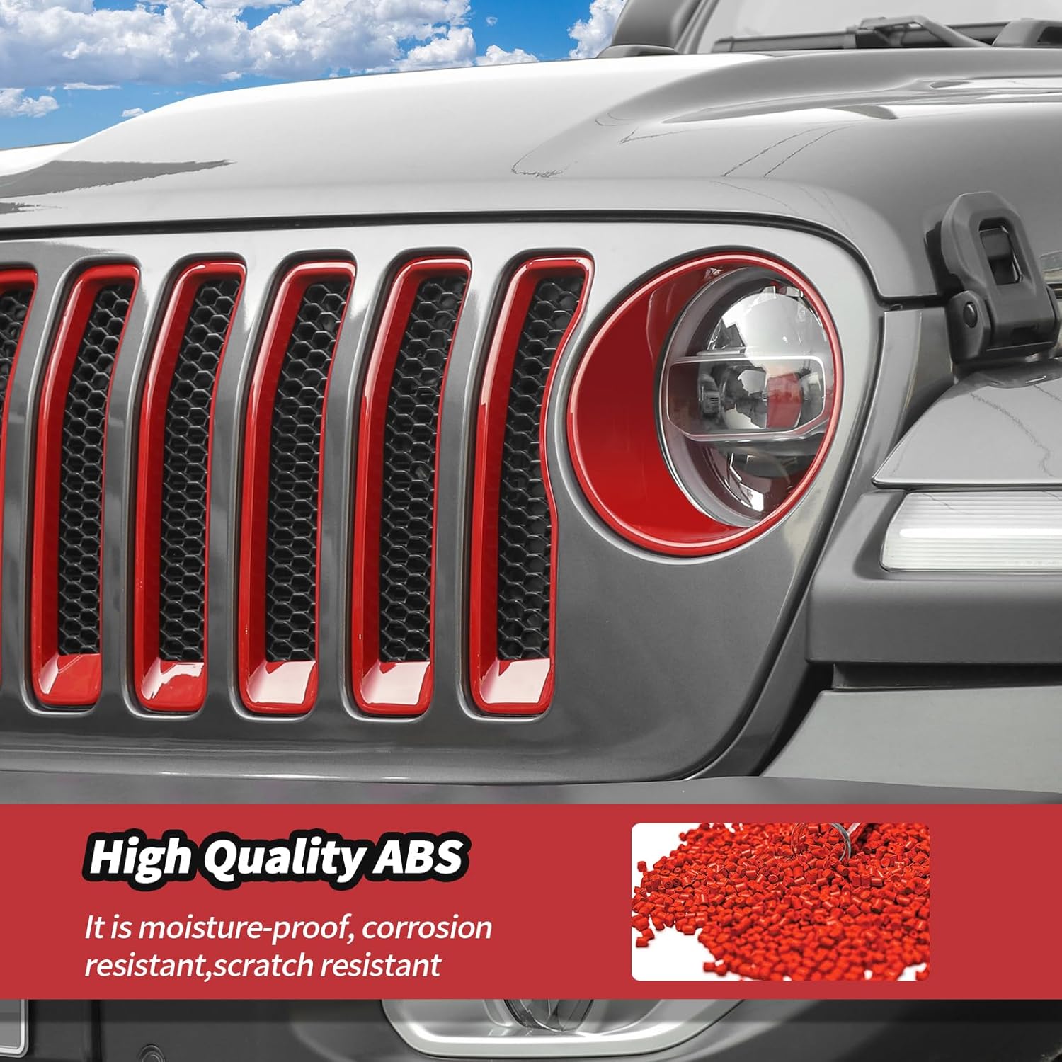 JeCar Grill Inserts & Headlight Covers Trim Accessories Fit for Jeep Wrangler JL JLU 2018-2023 (Red) Fit the Original Car with Ring