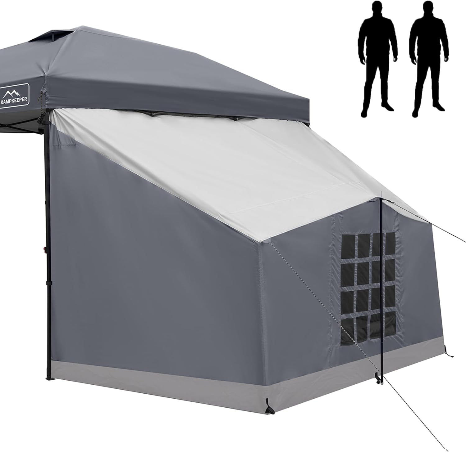 Transform your outdoor shelter into a cozy camping haven with this versatile side tent designed for 10' x 10' pop-up canopies. Perfect for camping enthusiasts and outdoor gatherings, this easy-to-set-up side tent attachment creates a protected space that shields you from wind, sun, and insects while extending your usable shelter area. The tent seamlessly integrates with standard 10-foot-wide canopy frames, offering quick installation without complicated tools or assembly. Whether you're planning a weekend camping trip, hosting a backyard event, or setting up at an outdoor venue, this side tent provides the extra privacy and protection you need. The practical design allows for convenient entry and exit while maintaining airflow. Keep your gear protected and create a comfortable living space under your canopy with this practical camping solution. Compatible with most 10' x 10' straight-leg canopy designs, this side tent helps you make the most of your outdoor setup.