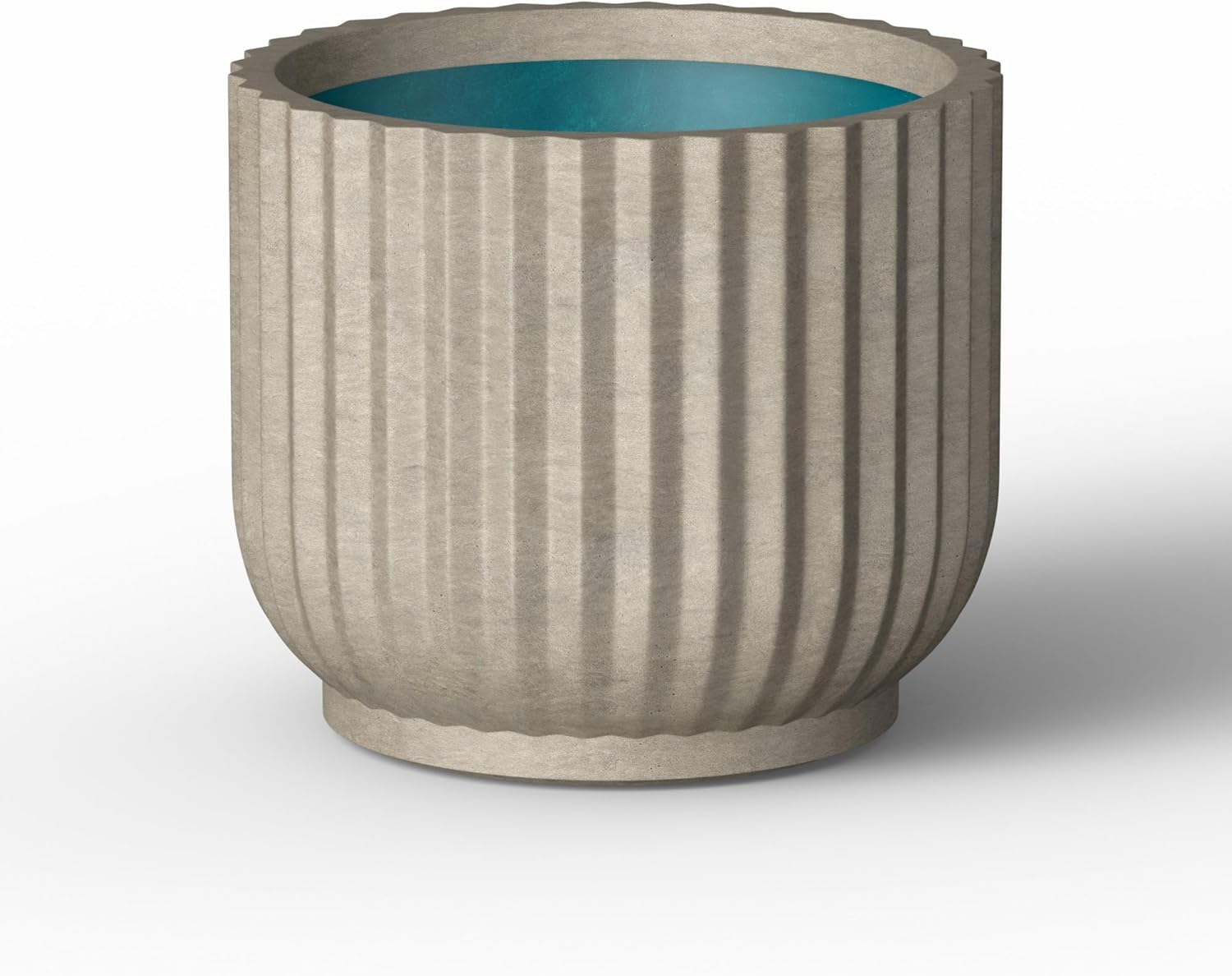 Kante Round Fluted Bowl Planter, 14.6 Inch Dia Large Concrete Flower Pots with Drainage Hole, Suitable for for Indoor Outdoor Plants, Home, Patio, Garden, Black Finish with Painted Interior Elegant Concrete Planter – Discover a modern design with smooth, flowing curves and a naturally weathered finish that exudes timeless appeal. Crafted with care, this statement piece seamlessly blends contemporary style with organic texture, featuring subtle pores that enhance its authenticity. It adds a refined touch of character to different surroundings.Handmade Plant Pot – Made from a premium concrete mixture, this pot maximizes durability, strength, and resistance to weather and damage. Its enduring color, combined with UV resistance, ensures that it maintains its vibrant appearance under the outdoor conditions.Large & Versatile – Whether showcasing a plant indoors or positioned on the front steps, porch, or patio, this generously sized planter enhances modern, minimalist, and traditional styles with its unique design. Its versatility makes it well-suited for a variety of settings.Drainage System – Our planter pot features drainage holes for efficient water management, each equipped with a rubber plug for both indoor and outdoor use. Enjoy effortless gardening with minimal upkeep, promoting a healthy environment for your plants.