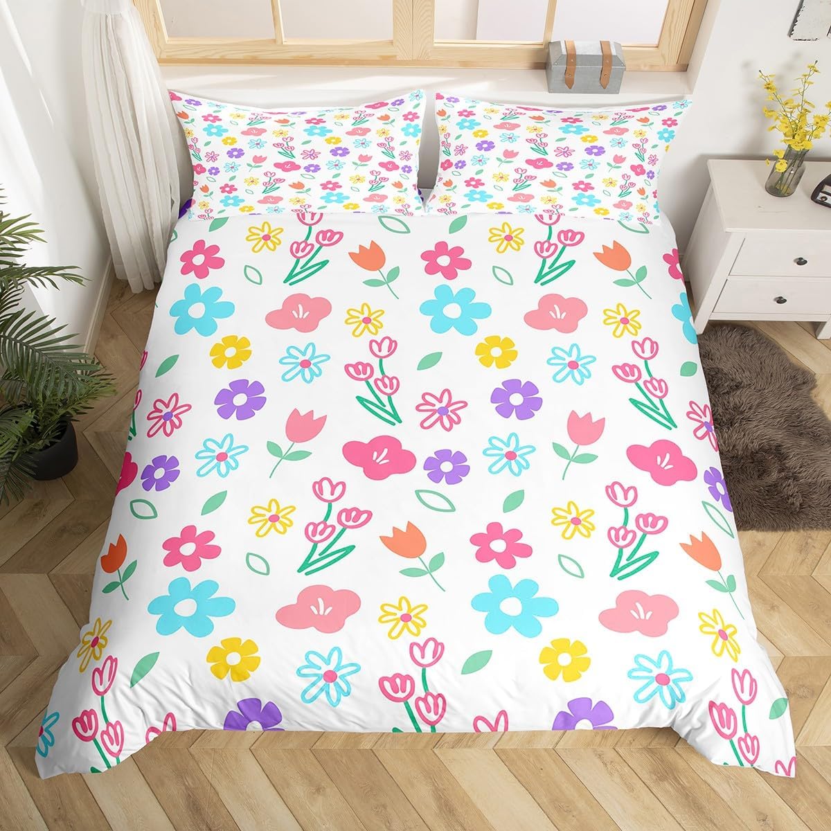 Package Include:Duvet Cover,Pillowcase. Creative and interesting prints Duvet Cover Set,simply decorating your rooms any time you want, bringing you fresh feel for year round use. Polyester: Made from polyester microfiber, the sheet set offers strength, natural resistance to shrinking and a noticeably soft hand feel. Size Information: Toddler size 2pcs:1 x Duvet Cover 42" x 58" and 1 x pillowcase 20" x 30".Without Comforter. Twin size 2pcs: 1 x Duvet Cover 68" x 90" and 1 x pillowcase 20" x 30".Without Comforter. Full size 3pcs: 1 x Duvet Cover 80" x 90" and 2 x pillowcase 20" x 30".Without Comforter. Queen size 3pcs: 1 x Duvet Cover 90" x 90" and 2 x pillowcase 20" x 30".Without Comforter. King size 3pcs: 1 x Duvet Cover 104" x 90" and 2 x pillowcase 20" x 36".Without Comforter. Personalize your bedroom: Beautiful design and colorful print, makes your bedroom unique and brings you a wonderful dream. Washing instructions: Machine wash separately in cold water,hang dry, do not bleach. Notes: This product does not include a comforter. Due to the light and screen setting difference, the item's color may be slightly different from the pictures. Due to manual measurement, there may be an error of 1 to 3 centimeters.