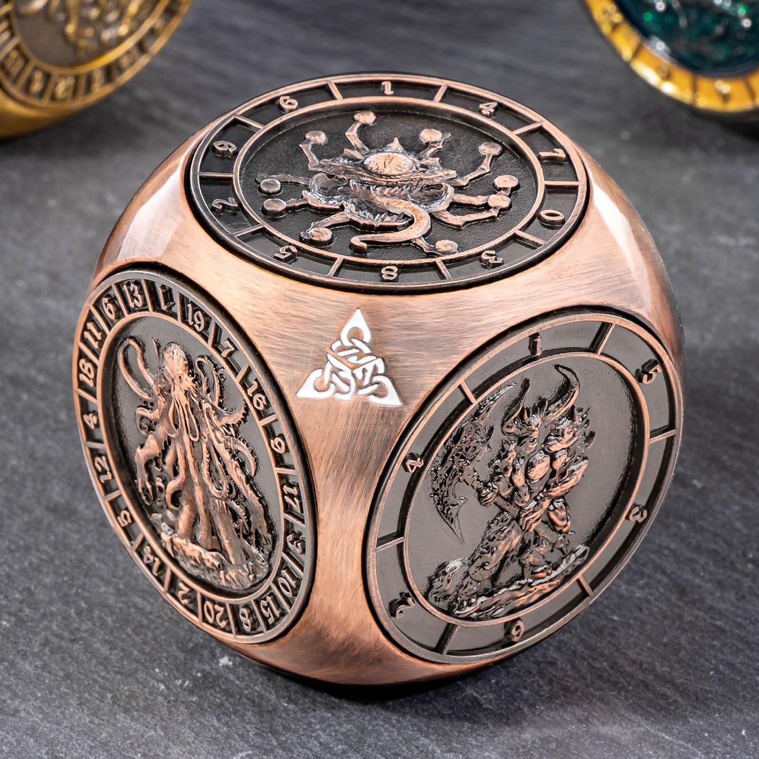 Rotating Metal Dice Set is a 7-in-1 rotating dice that combines d4, d6, d8, d10, D10%, d12, and d20. You can easily get the lucky numbers with just one spin, making the game even more fun