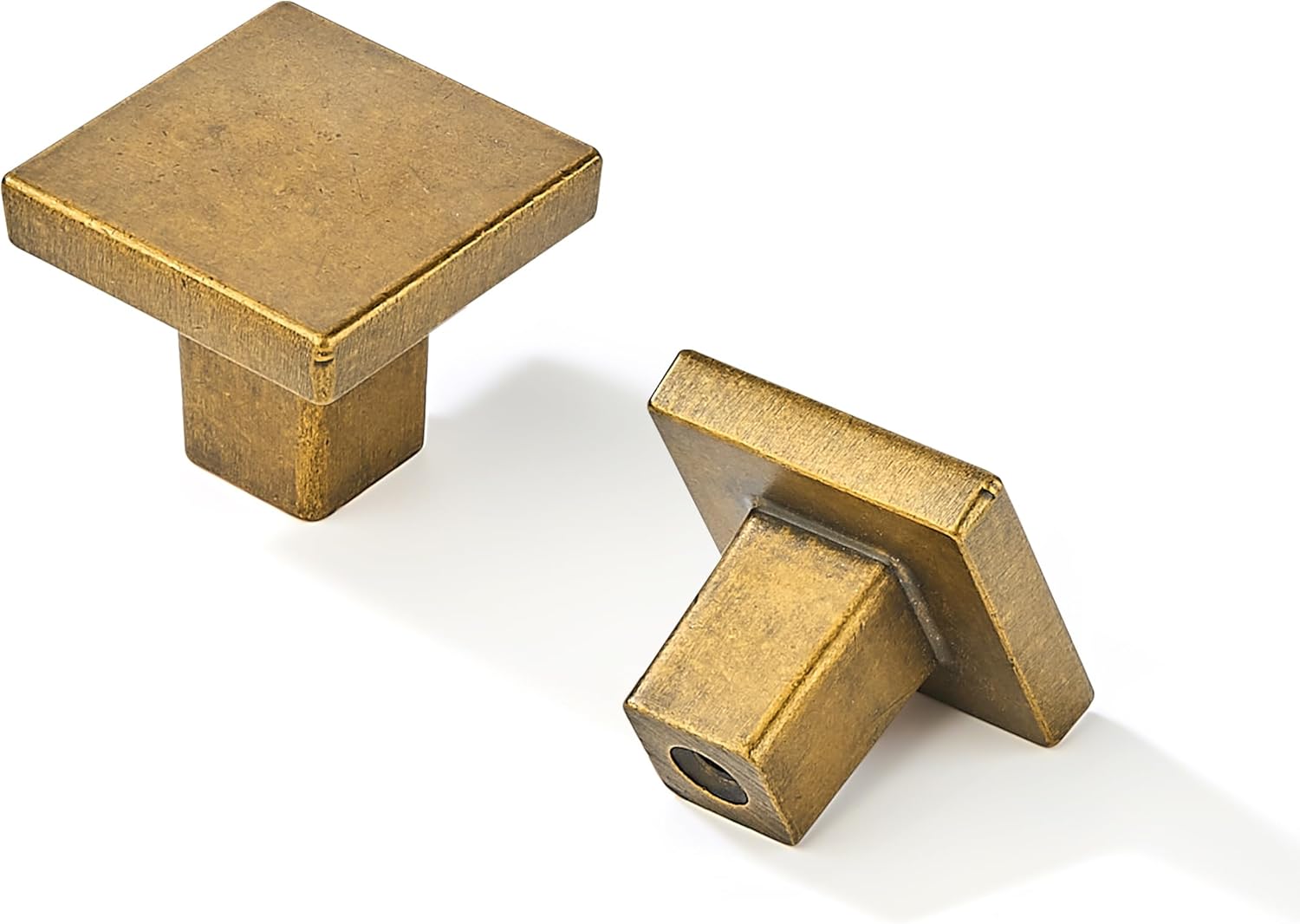khtumeware 20 Pack Square Champagne Bronze Cabinet Knobs 1-3/16 Inch Zinc Alloy Kitchen Solid Heavy Duty Knobs for Dresser,Cupboard,Closet & Furniture,Modern Durable Hardware