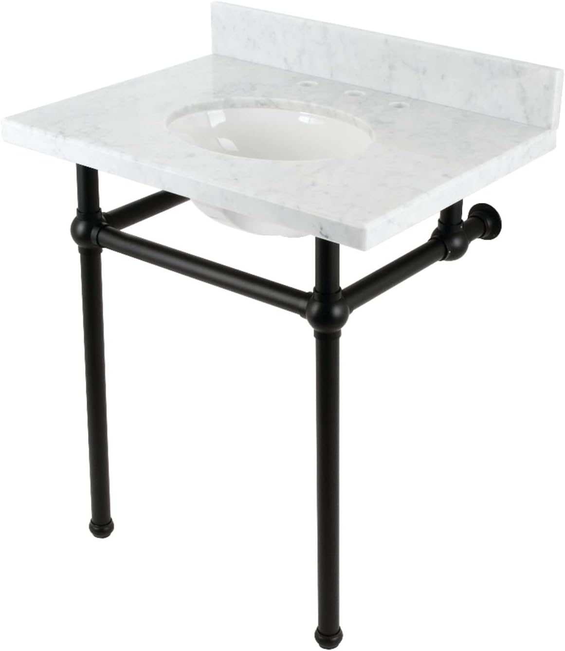 With a beautiful carrara marble counter top, this console sink set is a long lasting, durable, and elegant addition to your bathroom. A fabulous alternative where space is limited or tight, making them friendly for the whole family. With different shades and natural designs, otherwise known as veining, no two sinks will be alike. Also for your convenience, anti-slip rubber pads are included with the brass legs to ensure steadiness. Water supply kit, drain assembly, and the faucet are sold separately. Kingston's carrara marble tops are polished, but they are not sealed. Polished marble has a shiny surface and resists stains. Natural stone, even when polished, is still somewhat porous and does remain susceptible to etching by acidic compounds like fruit juice, vinegar, some cleaning solvents, etc. For customers that wish to further protect their investment the marble can be sealed. The following is intended solely for informational purposes. Kingston does not warranty nor accept liability for damages or other negative outcomes resulting from any treatment or coating applied to the countertop after purchase, whether applied by the customer or by a third party. For anyone unfamiliar with this nature of project, Kingston recommends consulting an experienced professional in your area. When looking for a sealant product, please be sure to seek a product specifically designed for use on polished marble, granite or other natural stone surfaces. Be sure to always avoid anything containing a citrus ingredient, acid ingredient, tung oil, linseed oil, or other natural oils. These can damage or discolor your marble.