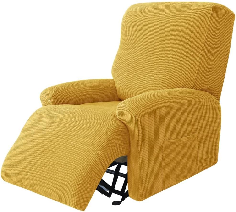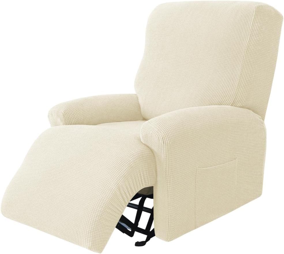 Perfect Slipcover to Match Your Personal StyleOur recliner covers are made of spandex jacquard fabric which is super elastic and will satisfy the needs of most homes. It could fit your manual and electric recliners chair sofa perfectly, fully covering your recliner chair, prolonging its service life. And our stretchable recliner chair cover use innovative design of large checker pattern, modern, stylish and easy to blend in with bedroom and living room style. It is machine washable, no fading even after repeated cleaning. Effortless installation and taking off can be done in 5 mins without reading the instructions.We believe this furniture protector will bring a different color to your home decor and so durable and comfortable reclining chair cover will be loved by you.