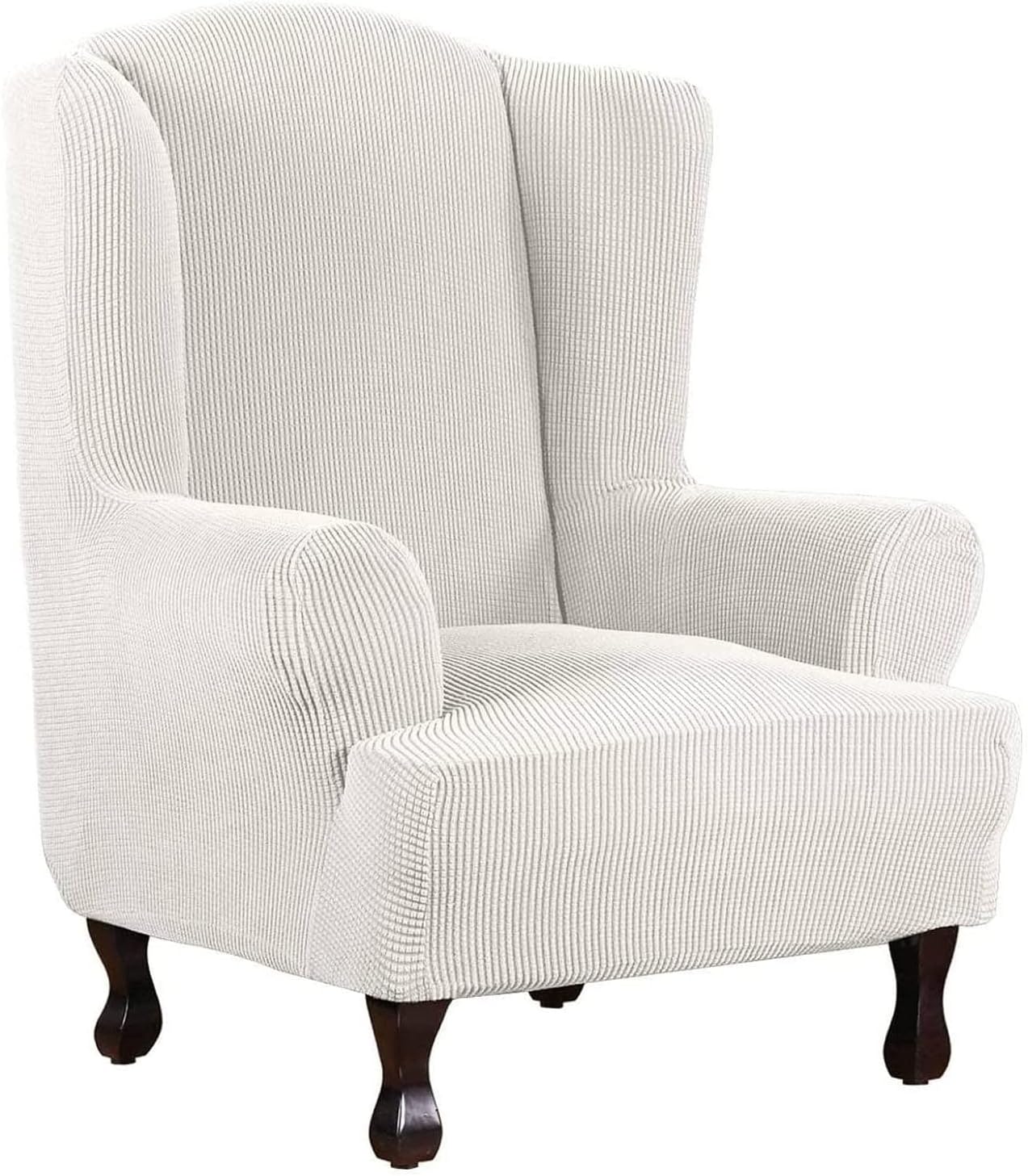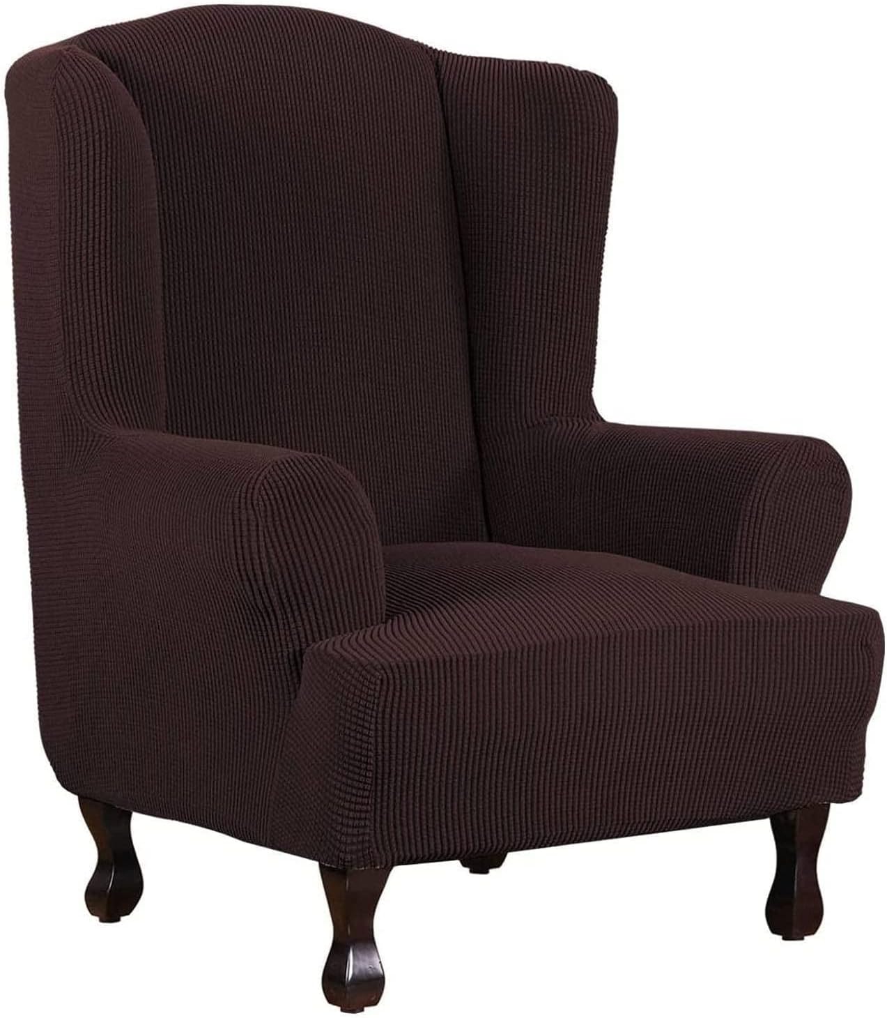 Wing chair slipcoverComfortable, beautiful, good-fitSTRETCH FIT: Crafted from elastic fabric,Polyester and Spandex, high stretchy, soft and durable. It fits most wingback chairsThe fashionable pattern and simple design will never be out of date. You can choose your favorite color according to the overall style of your room.wing chair slipcovers great for pets and kids.wingback chair slipcovers will prevent your chairs from spills, stains, wear and tear, dirt, and pet’s scratch and bite.✔ Made of elastic fabric, high stretchy, soft and durable. It can fit most wing chair.✔ Perfect protection against dust, spots, wear and tear, spills, pet scratches, pet hair.✔easy to put on and off, You can put the extra cloth under the seat cushion.✔ EASY TO INSTALL: The installation process is simple and easy to operate. Just find the washing label on the back of the cover and you can easily put it on.✔ Suitable for home, hotel, office, party, celebration or other events.Wing chair slipcovers1 Due to the different monitor and light effect, the actual color of the item might be slightly different.2 Please allow 1-3cm measuring deviation due to manual measurement.3 Please kindly measure your chair seats before placing order.
