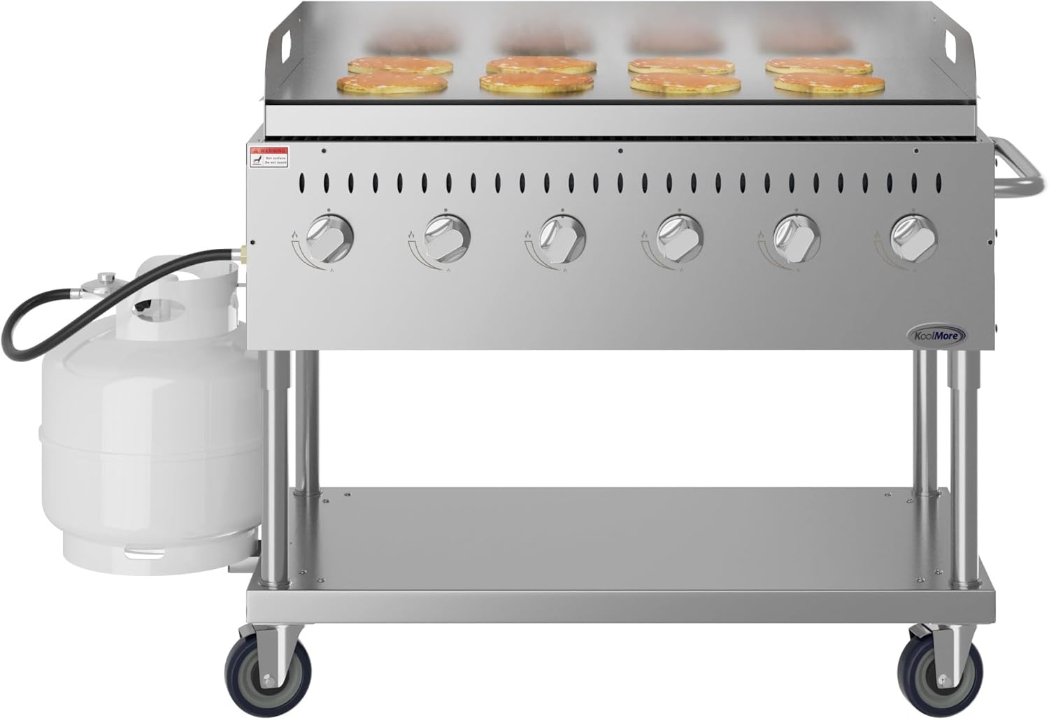 KoolMore 36 in. Front Shelf for Commercial Outdoor Grill.Enhance your grilling experience with the KoolMore Front Shelf, a robust and practical addition to your outdoor cooking setup.Designed to provide extra workspace right where you need it, this 36 in. front shelf is constructed from premium 16-gauge 304 stainless steel, ensuring durability and longevity.With a top capacity of 16 lbs., it offers ample support for your tools, ingredients, and even prepared dishes, making it an essential accessory for any serious griller.The lightweight design and no-assembly-required setup make it a convenient and efficient choice for expanding your grilling workspace.Key Features:Durable Construction: Crafted from high-quality 16-gauge 304 stainless steel, this shelf is built to withstand the rigors of outdoor grilling, offering superior resistance to rust and corrosion.Spacious Design: Measuring 35.8 inches in length and 9.6 inches in width, this front shelf provides ample space for prepping and holding grilling essentials, with a top capacity of 16 lbs.No Assembly Required: Designed for convenience, this front shelf can be easily attached without any assembly, allowing you to quickly enhance your grill setup.Lightweight and Portable: Weighing only 8.16 lbs., it’s easy to move and position whenever you need extra space, making your grilling experience more organized and efficient.Compatible with: KM-CGM-36 and KM-CGM-72