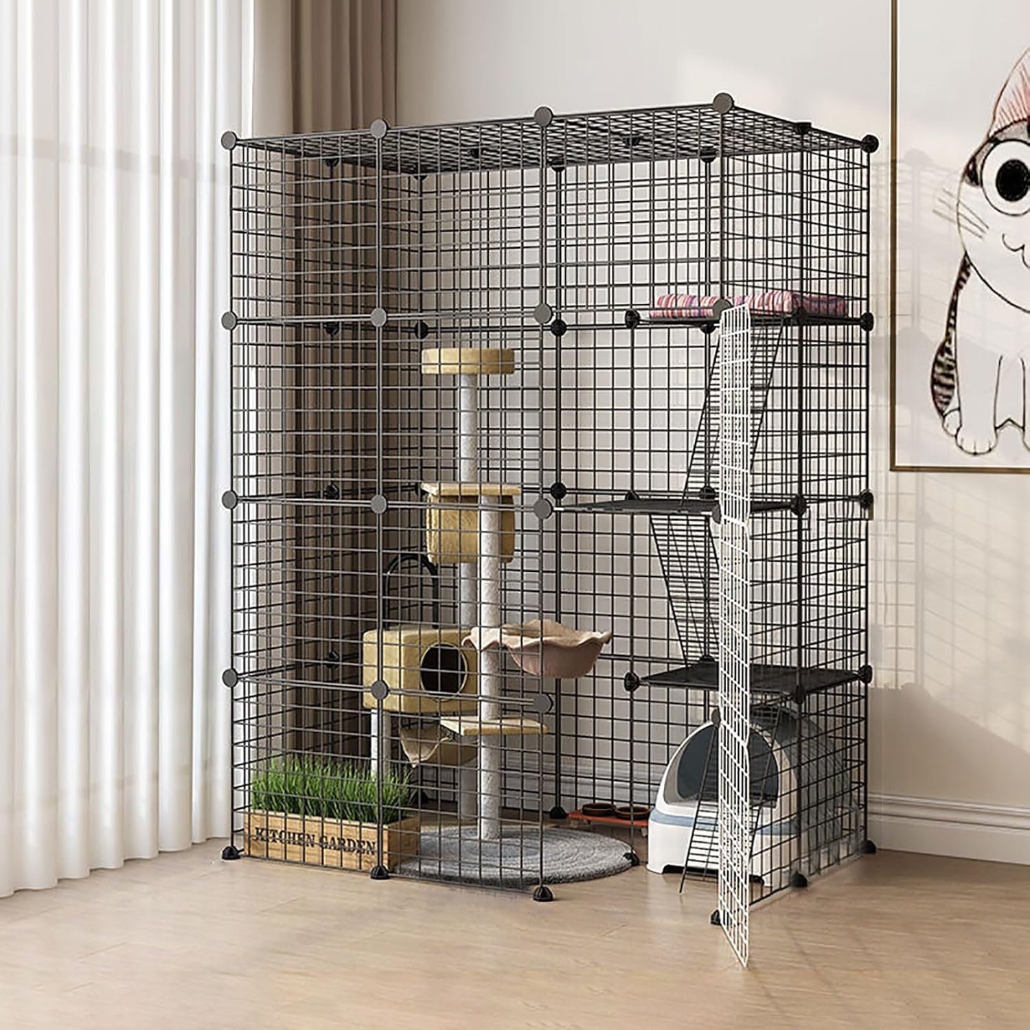 Welcome to my shop. Our cat cages is a must have for any cat lovers. Large cat cages is not only a cage for kitten,but an amusement park for them. The interesting design,will bring a lot of fun to your little cats. The sturdy and durable frame ensures their safety. It‘s a good friend both for you and your cats. This DIY enclosures is perfect for building castles for them to climb and explore,and for them to run out and play and interact with their family. Specifications: Name: Cat Cage Material: Metal,ABS Plastic Colour: Black Suitable: cats,guinea pigs and ferrets,Rabbits and other small pets Package include: 1x Cat cage Does not include (cat hammock,cat litter box,cat litter,etc.) other accessories Note: The cat cage is equipped with cable tie and white connectors to enhance stability. Make sure to use the cable tie to ensure the stability and firmness of the product.