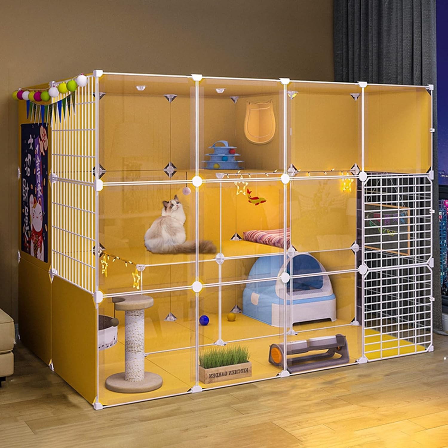 DIY pet iron net transparent fence,how to install,go out do not worry about the pet home mess was,not to worry about indoor space is not enough,not enough height,how to want to add how to add high,free splicing unlimited fun. Fun,magical,and full of possibilities,help you create a world for your pets with your own hands ·Grid design style,better ventilation and observation of your pet,thick material so that you don't feel weak without wind,you can move at will to change his position,whether indoor or outdoor,it is your good helper. Product name: DIY cat cage Colours: Yellow Material: metal,ABS plastic Size: 105*90*75cm,105*90*140cm,107*135*140cm,140*90*105cm,140*135*140cm Package includes: Cat Cages,Hammocks,Cat nest,Installation Tools Note: 1.Part of the paint will fall off during transportation,but it will not affect the use,please purchase with caution! 3. lf you have any questions,you can contact us by email,and we will reply within 12 hours. 100% Satisfaction Guarantee : Click the "ADD TO CART" button to order now! This product is backed up by our 100% SATISFACTION GUARANTEE and outstanding customer service for no-risk purchasing.