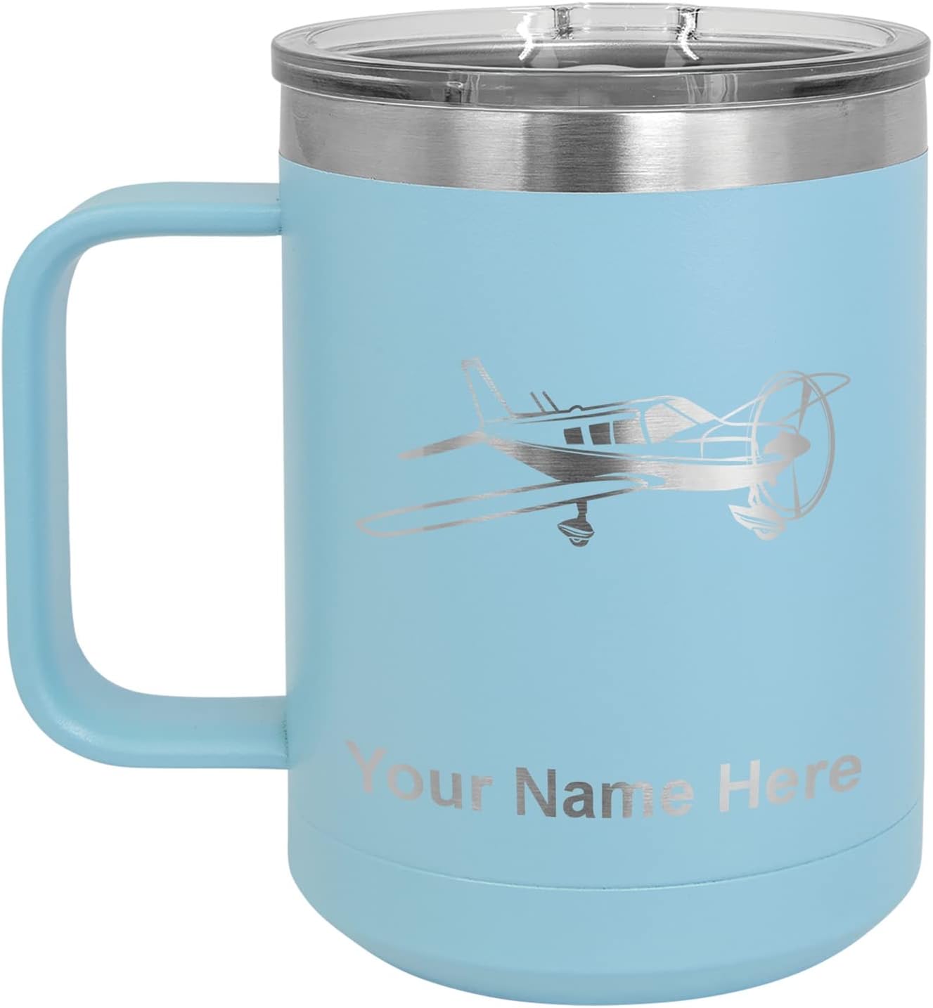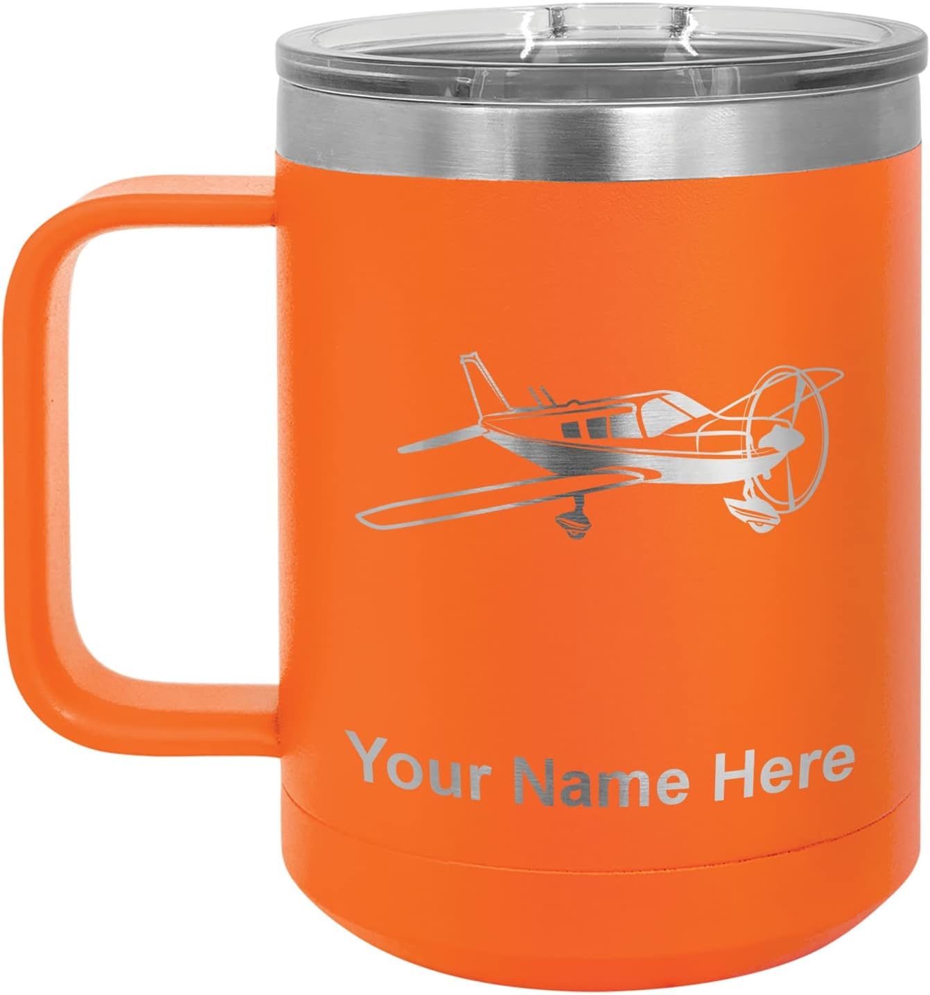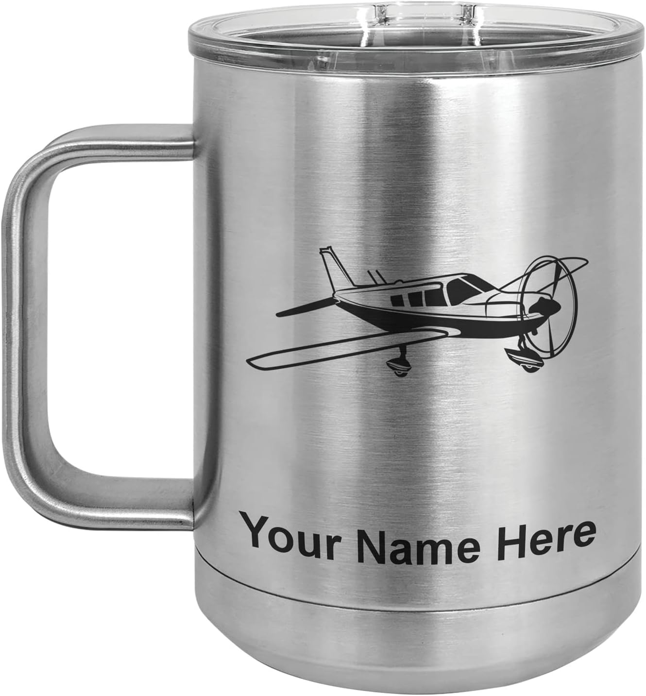 LaserGram 40 ounce Travel Mug with Handle that is laser engraved with the image that you see in the photo. Your own personalized text will be laser engraved below the image. Features double-walled stainless steel vacuum insulation with a clear lid. Click the "Customize Now" button to begin customizing your mug.