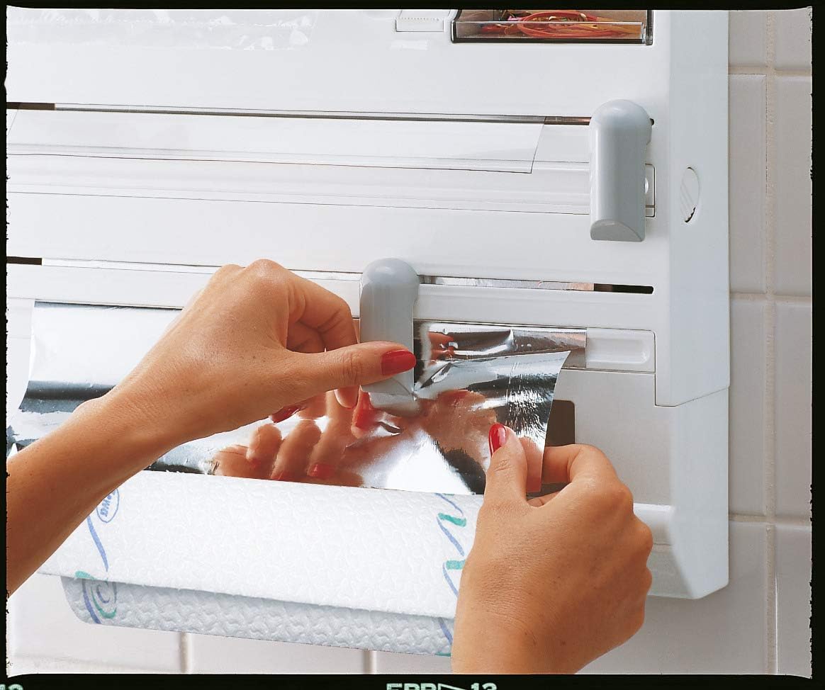 Neat foil ends thanks to razor-sharp special blades: the wall-mounted roll holder Parat cuts aluminum foils and plastic wrap neat and precise using the cutter. The foil ends remain ready at hand for the next step. An additional holder is for paper towels. Suitable for all commercial roll sizes (paper towel roll included). Hardware included for easy installation. 3 year warranty. Color: white.