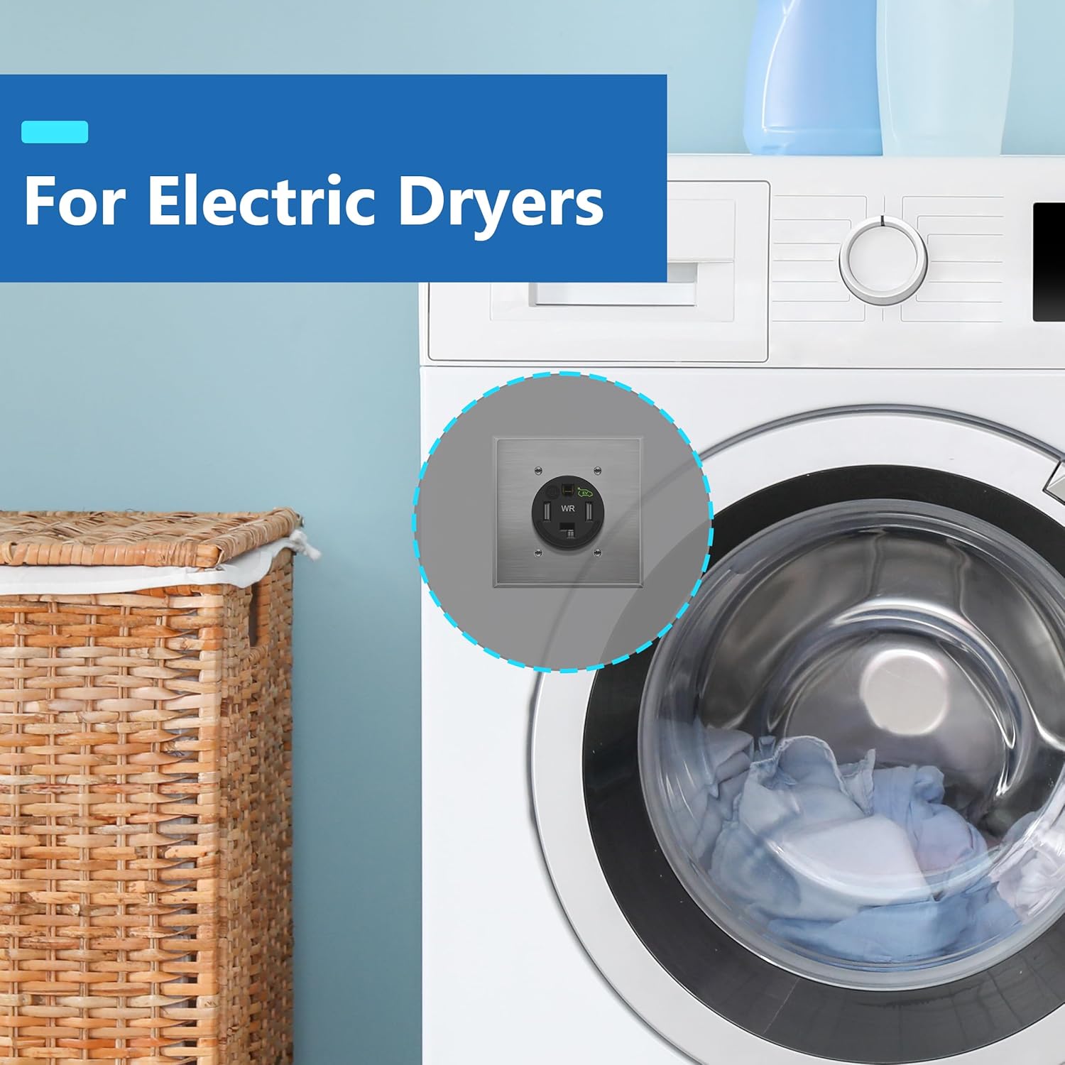 The LIDER NEMA 14-50 Receptacle Wall Plate (1-Gang) offers a durable and reliable solution designed specifically for NEMA 14-50R heavy-duty receptacles, ensuring a precise and secure fit. Made from high-quality stainless steel, this wall plate provides exceptional strength and impact resistance, withstanding heavy use and high temperatures without fading or wearing over time. Its corrosion-resistant material extends the product’s lifespan, even in harsh environments, ensuring long-term durability and performance. Ideal for garages, workshops, RV parks, commercial buildings, and industrial facilities, this wall plate offers easy installation with pre-drilled holes for secure attachment, making it a dependable choice for both residential and commercial applications requiring NEMA 14-50 receptacle covers. The LIDER 30A Flush Dryer Receptacle (NEMA 14-30R) delivers safe and consistent power for heavy appliances. Built with heavy-duty construction and designed for flush mount installations, it’s the perfect solution for powering 125/250V electric dryers. This receptacle features a fortified nylon housing for impact resistance and heat durability. Internally, silver-plated H65 brass contacts and ETP copper terminals ensure optimal conductivity and long-term performance. It also includes a self-grounding design, eliminating the need for a pigtail connection, while offering an optional ground terminal for added security. With support for #10 to #4 AWG copper or aluminum wire, it's built for solid and stranded wiring with torque-rated installation for safety. Whether you're upgrading a laundry room or completing a new build, this 30A outlet is ideal for dryer installations in homes, apartments, or residential facilities. Its robust design and code-compliant construction provide peace of mind and reliable operation with UL-Listed and 1-year warranty.