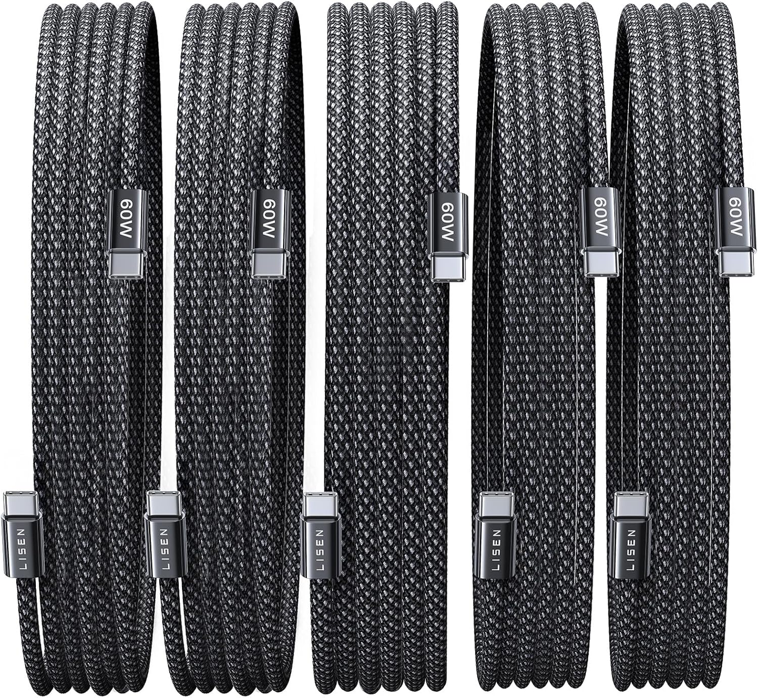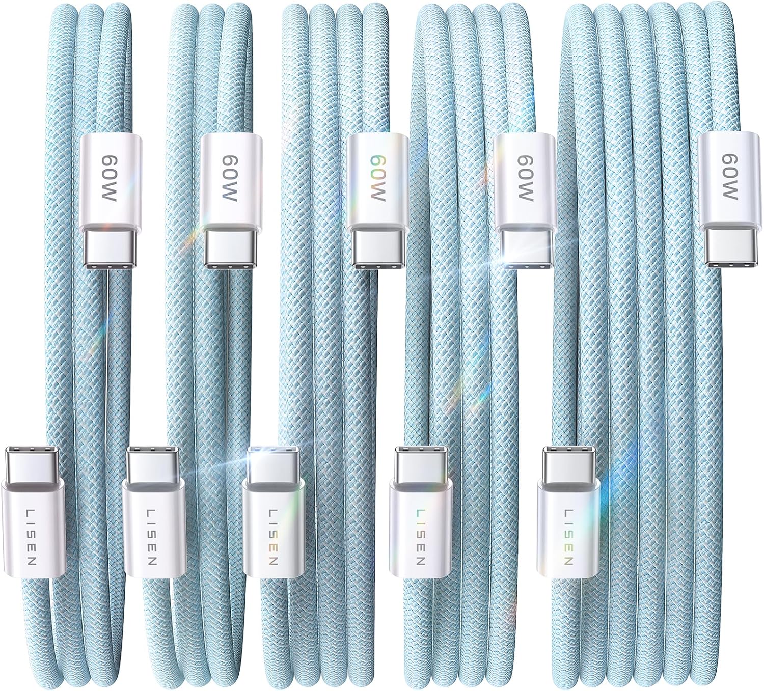 LISEN USB C to USB C Cable, 5-Pack [3.3/3.3/6.6/6.6/10FT] for iPhone 17 Charger Cord, 60W C to C Cable Fast Charging for iPad, iPhone 16 15 Pro Max, Galaxy S25/S24 USBC to USBC Cable Gifts for Men