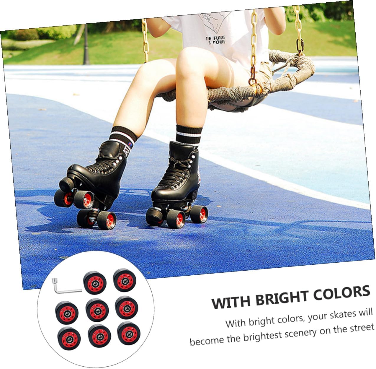 Package List 8 x Skating Wheels 1 x Wrench Characteristics -Color: As Shown -Size: 5.80X5.80X3.90cm/2.28X2.28X1.53in -Product Info:Speed ??skate shoe wheels -Material: PU -These roller skate wheels are good enough to be extra gripped on outdoor surfaces like streets and sidewalks roller sakte wheels. -A great accessory for your roller-skating shoes. Install these wheels and begin your own performance skate wheel. -With bright colors, your skates will become the brightest scenery on the street. -These wheels are perfect because it provides a sturdy and supportive foundation when skating on outdoor surfaces rollerskate wheels. -Specifically designed for peak performance on rough and uneven surfaces, such as concrete and asphalt Skates Wheels.Goods Descriptionroller sakte wheels If you are a crazy fan of roller skating, you shouldn't miss this roller-skating wheel.Skating Replacement Wheels These wheels are made of durable material with strong hardness and well grip performance, give you a better experience in skating.roller wheel skates Equipped these wheels, and you will be the coolest one