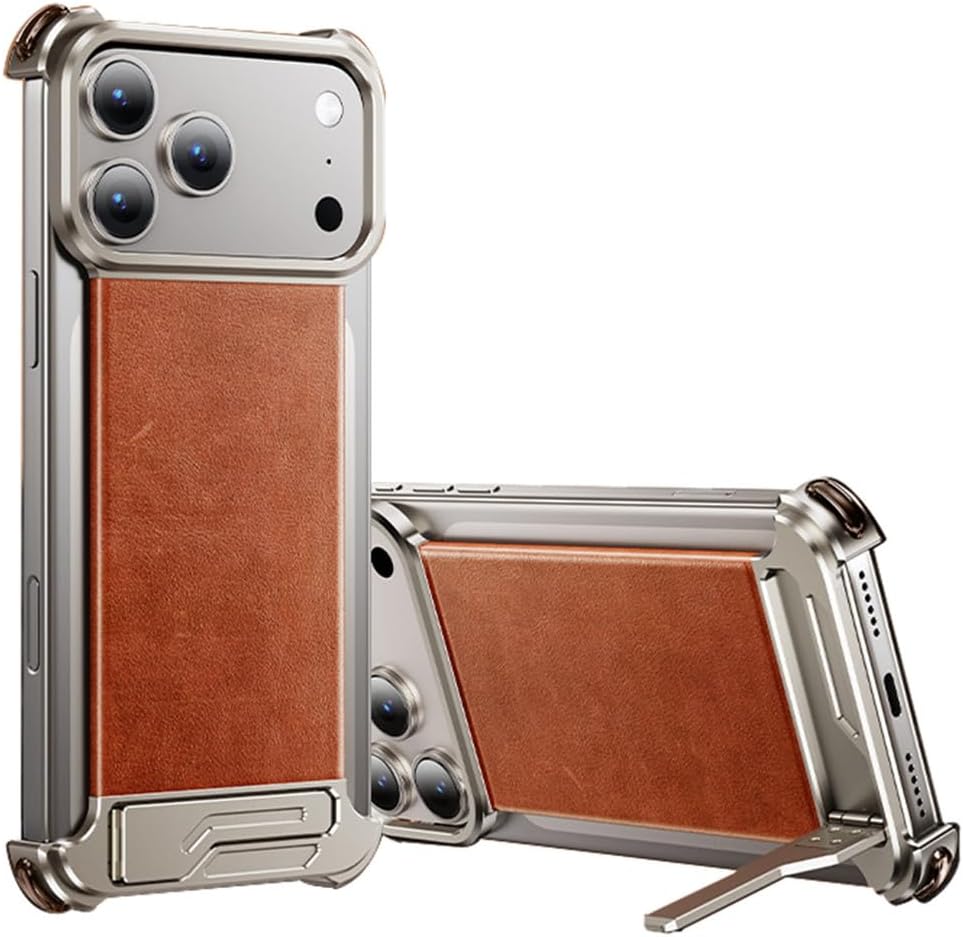 LATEST 2025 DESIGNMagnetic leather metal case for iPhone 17 Pro Max / 17 Pro. Genuine leather back combined with an aluminum alloy frame creates a slim, stylish, and durable look for the newest 2025 model.COMPATIBLE WITH MAGSAFEBuilt-in magnetic ring ensures strong adsorption. Fully compatible with MagSafe charging, wireless chargers, car mounts, and magnetic accessories.KICKSTAND FUNCTIONHidden foldable stand supports both horizontal and vertical viewing. Perfect for hands-free video calls, gaming, and streaming anytime.SHOCKPROOF PROTECTIONReinforced airbag corners absorb shocks and protect your phone from accidental drops and bumps. Lightweight yet reliable for daily use.PACKAGE INCLUDES1 × Leather Metal Case for iPhone 17 Pro Max / 17 ProWARRANTYWe stand by our products. If you encounter any issues, please contact us for prompt support and hassle-free replacement.NOTEThe pictures are purely handmade and may have slight color differences.