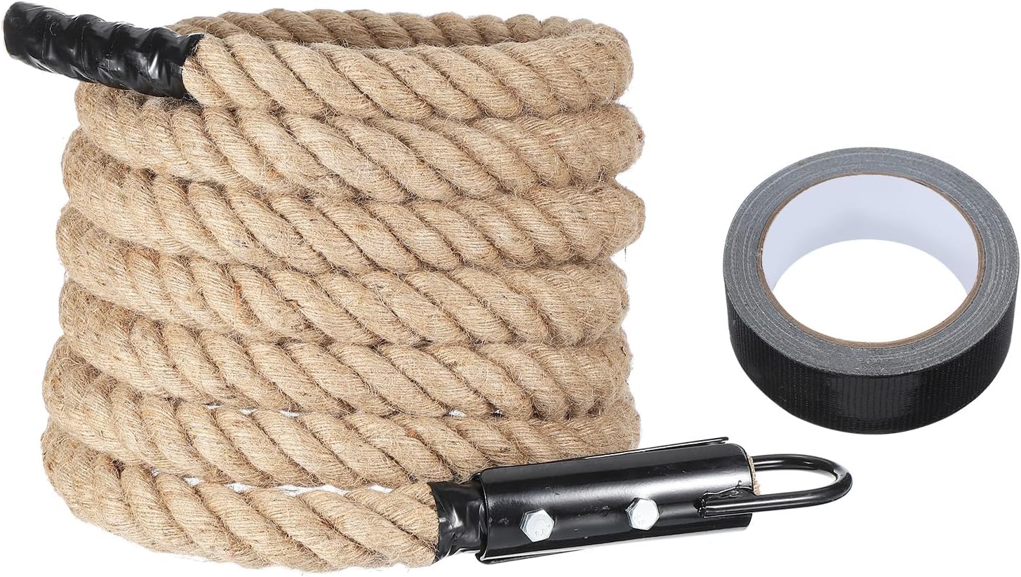 What is this?The battle rope is primarily used for high-intensity aerobic exercise and full-body muscle building, aiming to enhance core strength, improve explosive power and balance. It is highly suitable for fitness exercises, tug of war, MMA training and Indoor and outdoor activities.What will I get?Length: 3 m / 10ft; Diameter: 3.8cm / 1.5 inch; Material: Jute; Color: Yellow; In the package of: 1Pcs x Fitness Training RopeAre there any advantages of the product?Durable Material: Fitness exercise rope is made of durable jute, with multi-strand winding and weaving, it is sturdy, wear-resistant, strong weighing strength and ensuring a long-term use.Removable Steel Hook: Made of sturdy steel with a paint coated surface treatment, resistant to rust and corrosion.Plastic-Coated Handle: The rope features plastic-coated handles on both ends, which provide a comfortable grip and prevent it from loosening and slipping.How to use it?Swinging, waving, or pulling the workout ropes to perform various exercises such as waves helps with strength training, working out the ab, arm and shoulder, and enhancing body flexibility and coordination.What should I notice?Check ropes regularly for damage or wear.