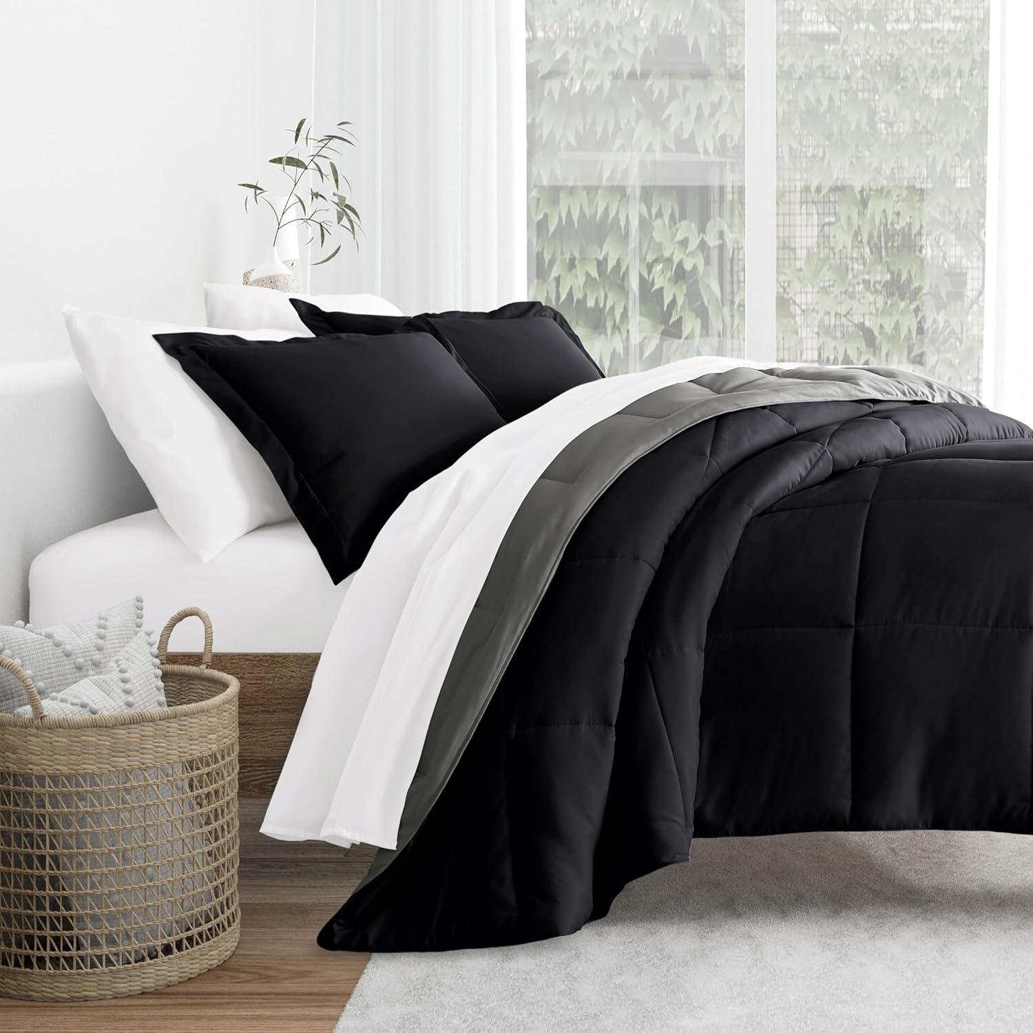 Merit Linens Comforter Set Two-Toned Reversible Microfiber All Season Down-Alternative Ultra Soft Bedding - Full/Queen Eucalyptus/Natural