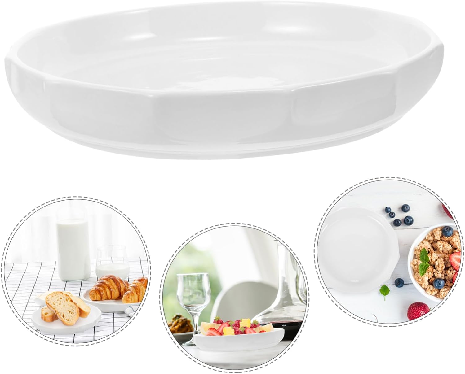 Package List 1 Features -Material:Ceramic serving platter -Size:24.50X24.50X4.00cm/9.63X9.63X1.57in dish bowl plate serving -Color:White serving dish -With proper size, this plate is suitable for a variety of dishes, from appetizers to main courses food platters. -The simple plate is perfect for those who prefer a minimalist and fashionable style in their dining ware decorative plate. -The plate is creatively designed, making it a unique and beautiful addition to any table setting platters. -This ceramic plate is designed for restaurant-style plating, adding an enhanced dining atmosphere to any meal ceramic dinner plate. -This plate is versatile and can be used in hotel, restaurant, and home, making it a great addition to any kitchen or dining room serving dishes.Goods Informationdining plates The simple soup plate showcases a minimalist and stylish style, which can be matched with various tableware, making the entire dining scene more coordinated.ceramic dish Whether used in hotels, restaurants, or homes, this ceramic plate can bring you a pleasant dining experience